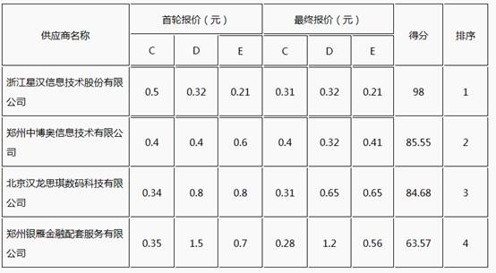 成交金额:综合档案数字化生产加工(一)0.31元;综合档案数字化生产加工(二)0.32元;综合档案数字化生产加工(三)0.21元;