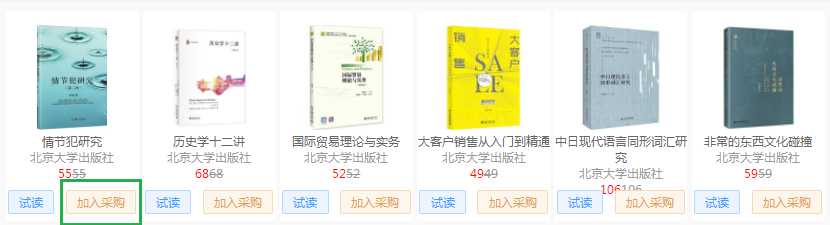 5.选书:点击任意分类或书单,即可进入对应书目列表页,选择心仪的图书,点击”加入采购“即可