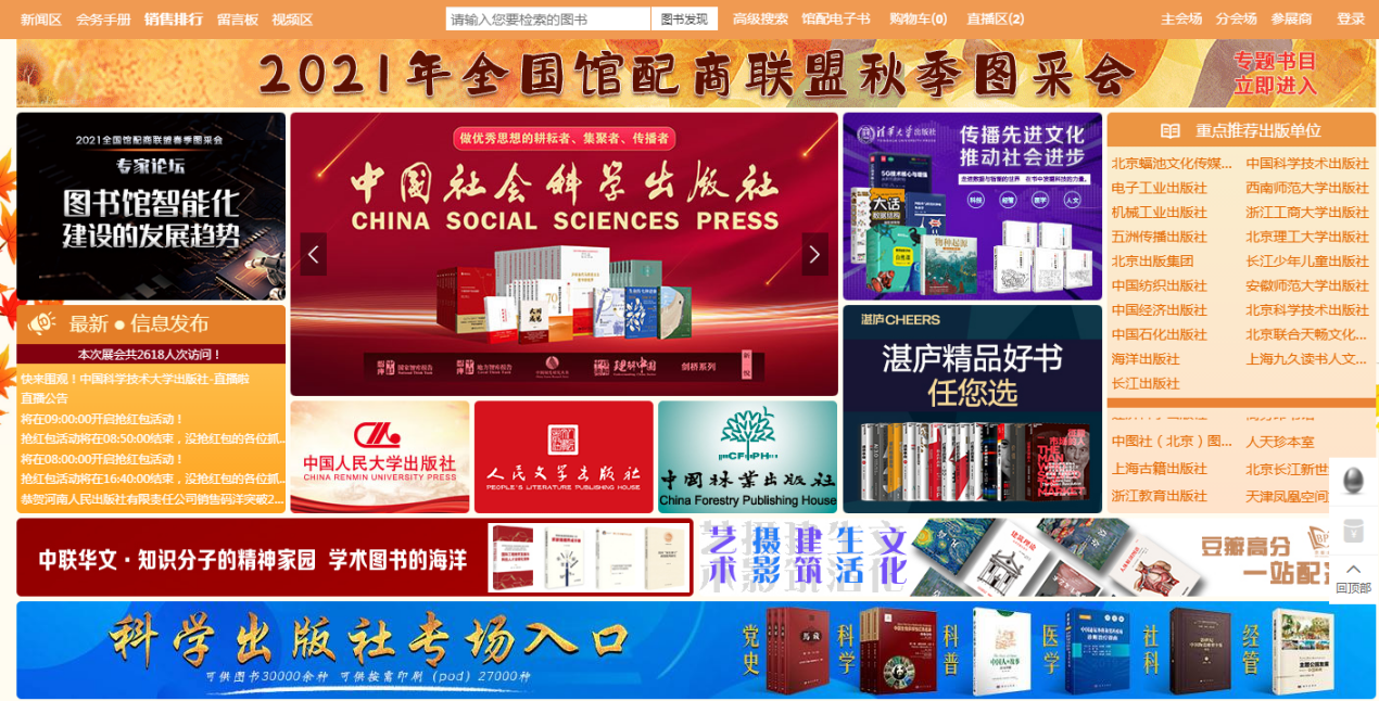 金秋时节,“云端”相约。2021全国馆配商联盟秋季线上图采会如约而至。为更好地服务广大师生,提高bet36体育在线馆藏资源的利用率。图书馆特举办2021秋季“云采会”图采活动。诚邀广大师生参与到bet36体育在线文献资源建设中来。
