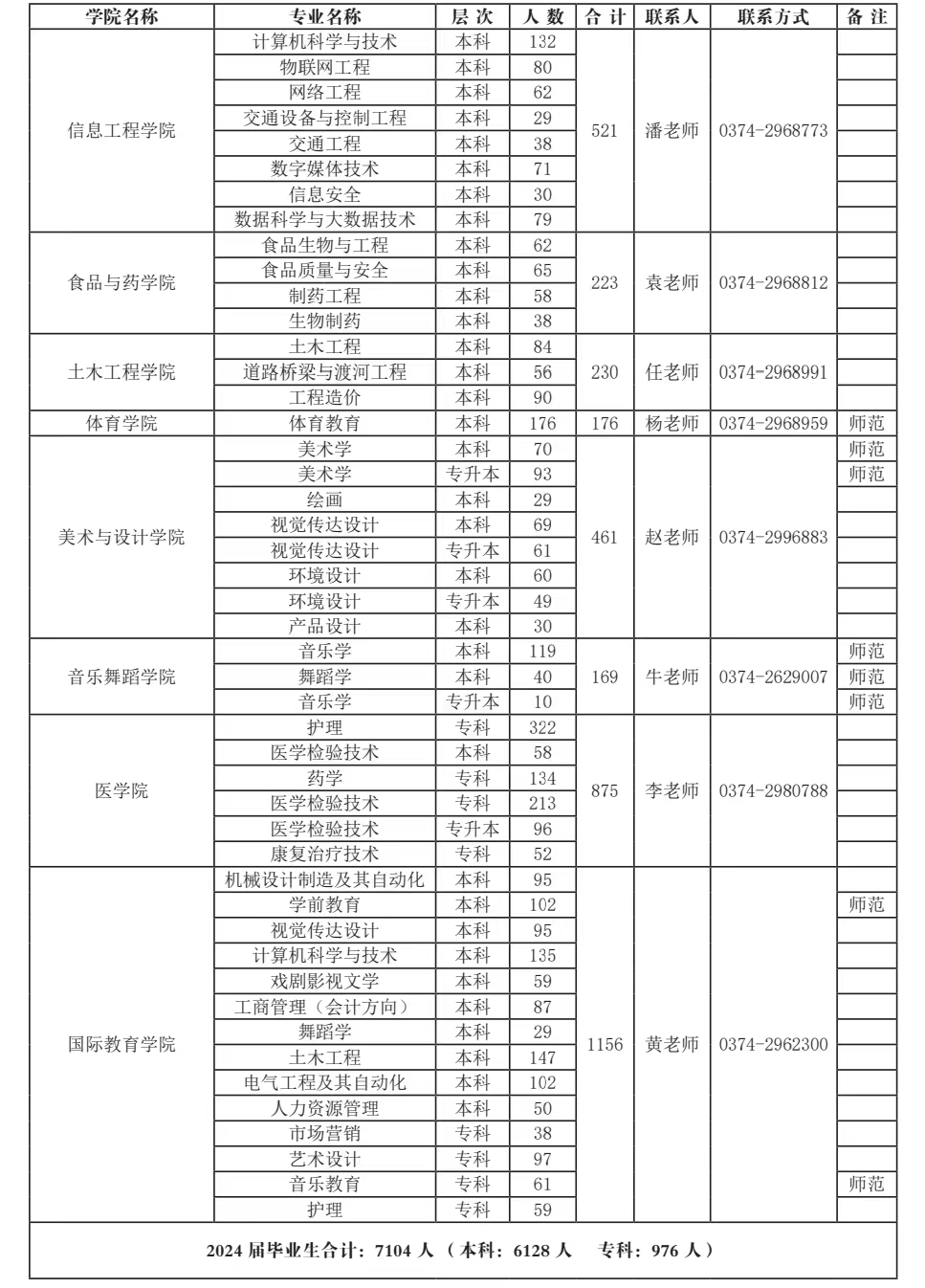 bet36体育在线2024届毕业生共计7104人。其中,本科毕业生6128人,专科毕业生976人,涵盖理学、工学、文学、史学、法学、经济学、管理学、教育学、艺术学、医学等十个学科门类。