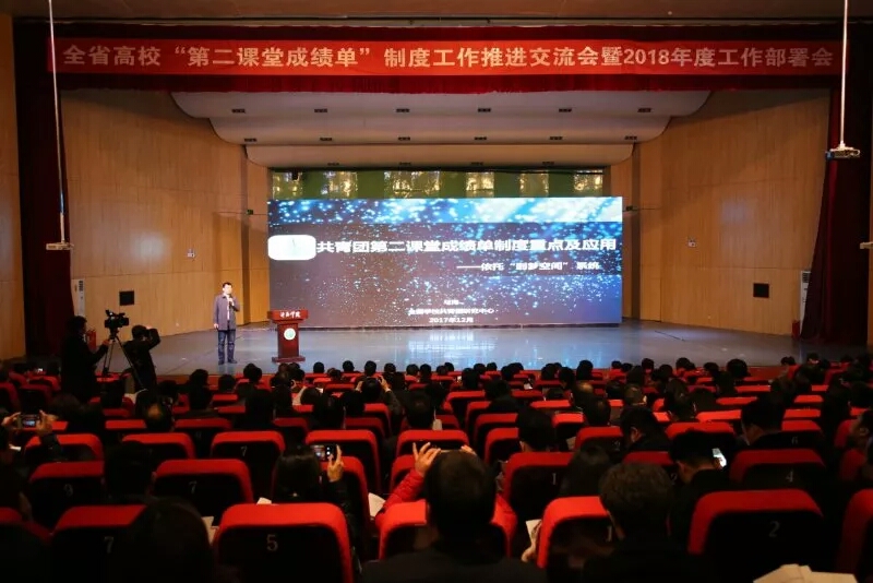 会上,全国学校共青团研究中心活动部部长马海和PU口袋校园负责人郑岚分别就“到梦空间”系统和PU口袋校园系统做工作培训。6所省内外高校代表针对本校“第二课堂成绩单”制度推行工作情况做分享交流。