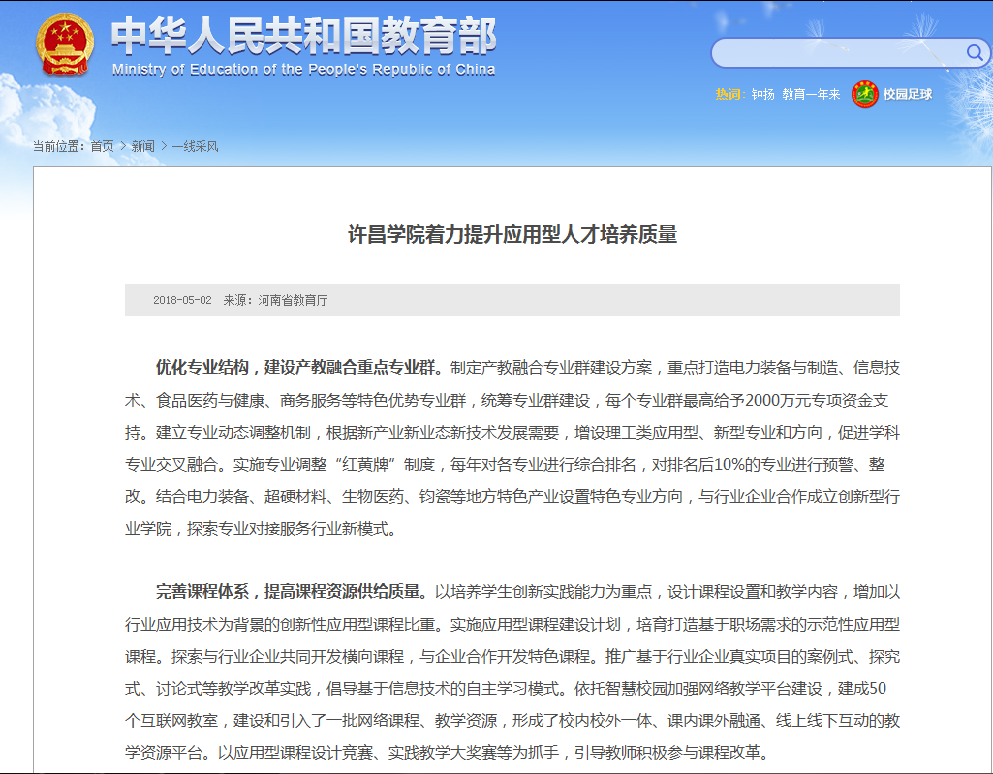据了解,该文曾刊载于2018年第1期《河南教育信息》,在全省范围内广泛推介。近日,河南省教育厅将此作为“教育要情”上报教育部,并被教育部官方网站采用刊发。