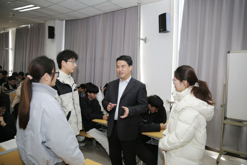 刘荣增、郑直认真观摩课堂教学,详细记录教学环节,细致观察师生互动情况。课间,刘荣增、郑直与师生亲切交流,详细询问同学们的学习感受和对思政课的意见建议,并从进一步优化教学内容设计、创新教学方法、增强课堂吸引力和感染力等方面提出具体指导性意见。