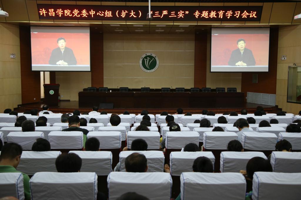6月10日下午,bet36体育在线在学术报告厅举行党委中心组(扩大)“三严三实”专题教育学习会议。校领导马超、赵正风、黄怡俐、郭涛、罗凤英,全体处级干部,教学院(部)团总支书记、办公室主任,机关、教辅、附属单位科级干部,教工党支部书记参加学习。