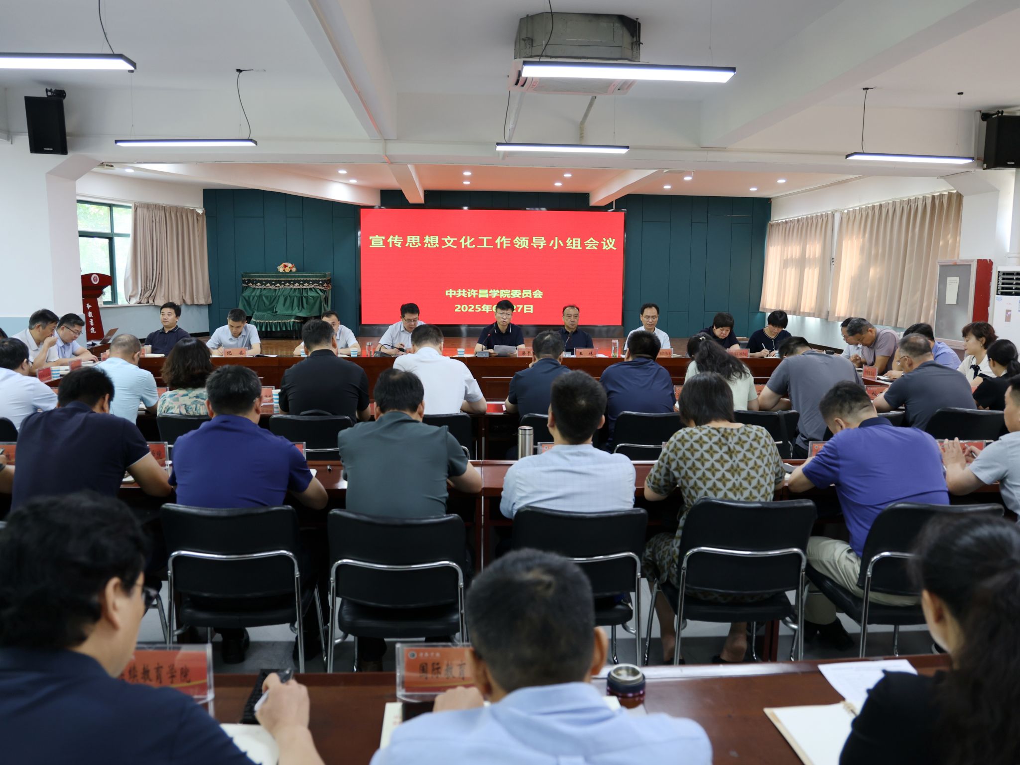 会议传达学习了上级有关涉意识形态文件精神,通报了学校意识形态工作调研情况、2025年上半年网络舆情监控与处置情况等,并对近期学校的意识形态工作、民族宗教工作和假期的安全稳定工作进行了安排部署。(摄影:杨哲)