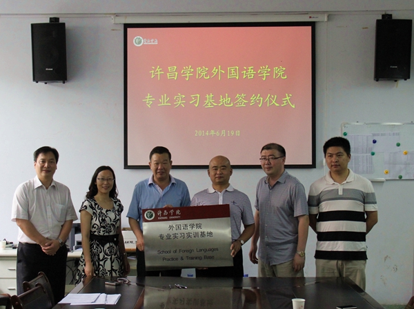 6月19日上午,外国语学院2014年新建专业实习基地签约仪式在学院外国语学院举行,bet36体育在线副院长张建军教授应邀出席并讲话。参加仪式的企业代表有许昌瑞宇商贸有限公司经理白光宇、许昌海亚进出口贸易公司经理陈利磊、广州华宇商贸有限公司经理王鹏。外国语学院班子成员及部分教师代表也参加了仪式。签约仪式由外国语学院党总支书记许涛主持。??