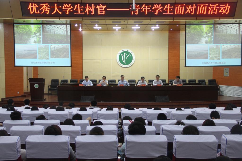 会上,杜俊鹏等六名优秀大学生村官分别围绕自身扎根基层、艰苦奋斗的创业历程,创业过程中遇到的困难和问题,青年大学生如何提高创业能力等方面向同学们传授了自己创业就业,带领农民走上致富之路的典型经验。优秀大学生村官们志愿投身农村、勇于担当、敢于创造、踏实质朴的优秀品质赢得同学们阵阵热烈掌。