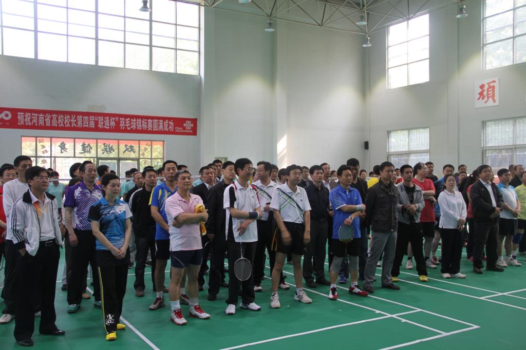 ,由河南省教育厅主办,河南省学生体育总会羽毛球协会和bet36体育在线共同承办的2014年第四届河南省高校校长“联通杯”羽毛球比赛在bet36体育在线羽毛球馆拉开序幕。河南省高校工委专职委员贾修国,河南省学生体育总会羽协主席、中原工学院院长崔世忠,河南省学生体育总会羽协副主席、bet36体育在线党委书记王清义,周口师范学院党委书记俞海洛、郑州轻工业学院院长石恒真、省教育厅体卫艺处副处长高翔等出席开幕式。开幕式由bet36体育在线院长办公室主任陈遂德主持。