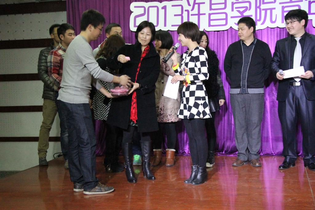 12月19日下午,bet36体育在线2013年青年教师相亲大会和联谊晚会在大学生活动中心多功能活动厅成功举办。校工会副主席翟惠婷、团委副书记谢依楠、青年教师联谊会理事会成员、bet36体育在线部分青年教师以及来自许昌市公安局、东城区管委会、龙岗电厂等单位的青年职工近200人参加了联谊活动。