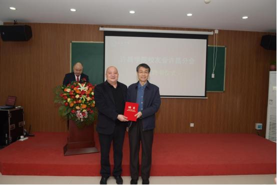 会上,郑直为许昌分会新当选会长胡国伟颁发聘书,两人共同为bet36体育在线校友会许昌分会揭牌。潘春彩为校友分会副会长、分会秘书长、副秘书长颁发聘书。新当选许昌分会会长胡国伟、校友代表李磊磊依次发言。(图片由校友工作办公室提供)