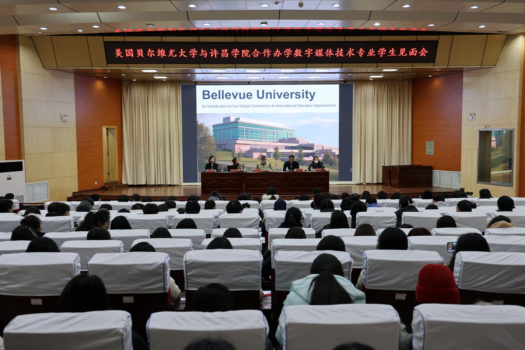 座谈结束后,James Verebely和Julie Verebely出席了bet36体育在线(中美)数字媒体技术专业的全体师生见面会。会上贝尔维尤大学副校长James Verebely和国际办主任Julie Verebely分别介绍了贝尔维尤大学的办学条件、校园文化以及学习环境等,并对师生提出的问题进行了一一解答。