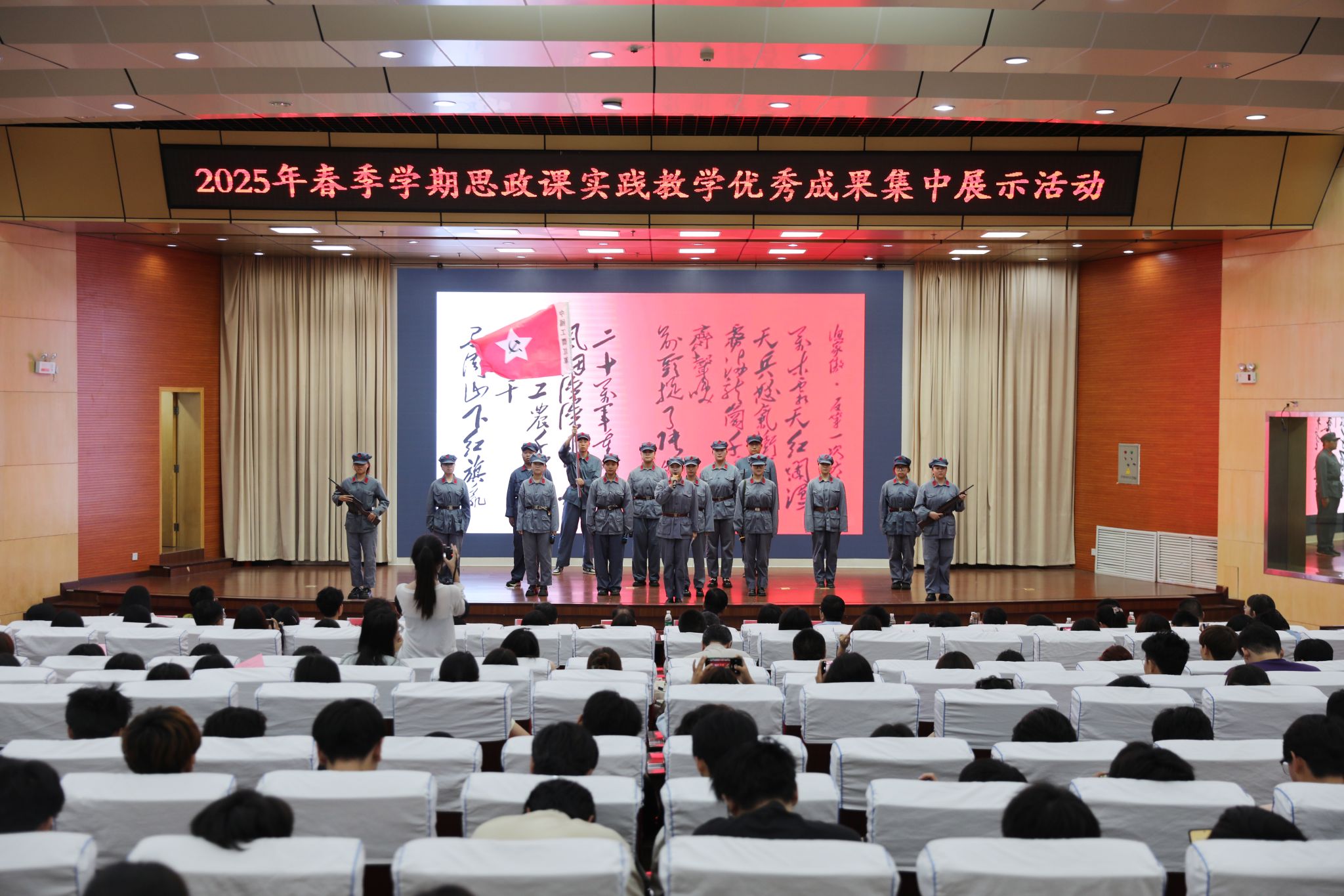 经过初评遴选等环节,共有《诗朗诵:<七绝·呈父亲>》等16个节目进入到现场展示环节。展示活动在《东方红》的歌声缓缓拉开帷幕,16个节目以情景剧、舞蹈、歌曲、朗诵等形式,围绕“星火燎原、雄关漫道、淬火铸魂、换了人间、还看今朝”五个篇章展开精彩展示,生动呈现了毛泽东诗词中的革命精神,有效彰显了思政课育人实效,现场不时爆发阵阵掌声。