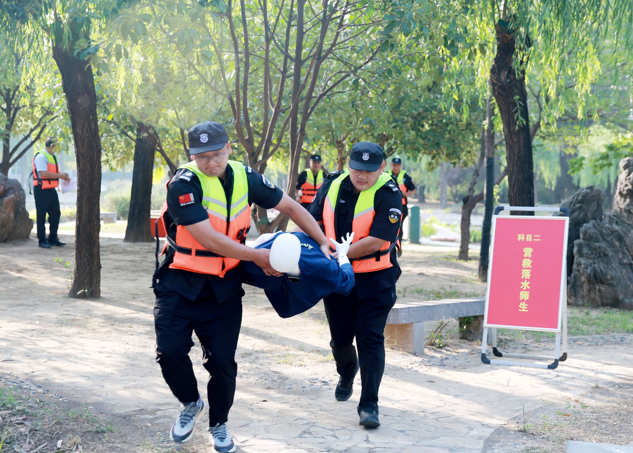 本次演练以连日暴雨发生洪涝灾害,校园启动防汛应急三级预警为背景。全体演练人员按照事先制定的演练方案,快速到达指定位置,分工协作,有序开展校园查险救人、抢救落水师生、组织人员急救、电力抢修、紧急排涝、消杀清淤六个科目的应急演练。整场演练活动紧张有序,各组人员分工明确、配合密切,圆满完成各项演练任务。
