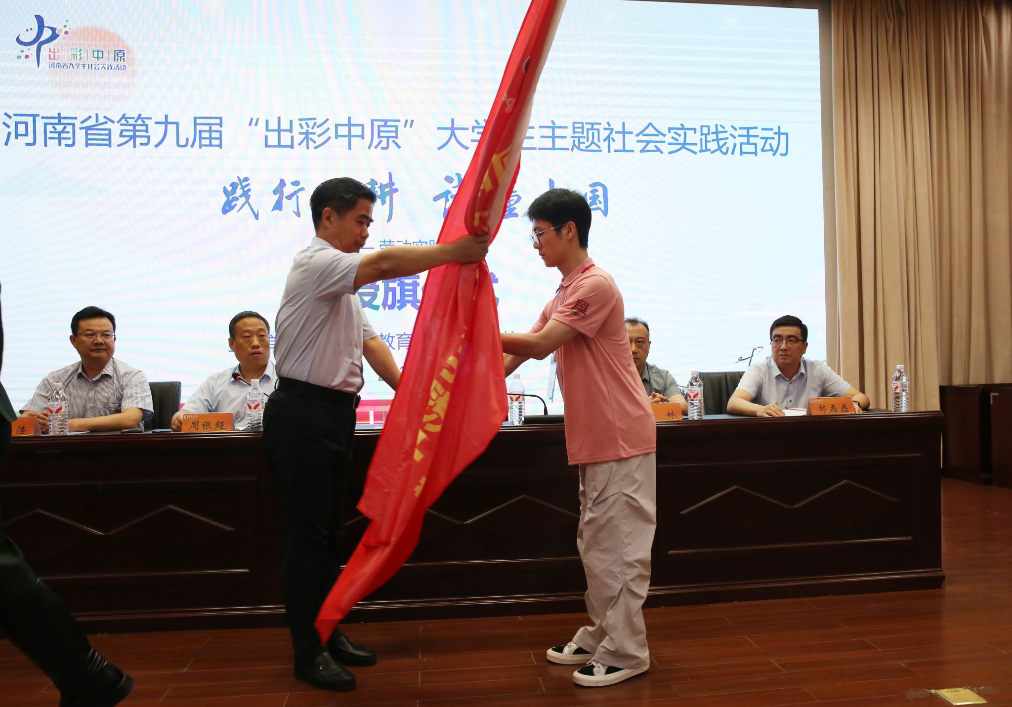 7月18日下午,2025年河南省“出彩中原”大学生主题社会实践活动“践行农耕·读懂中国”启动仪式在图书馆二楼学术报告厅举行。副校长冯晓民出席启动仪式并为培训班授旗。党委宣传部、学生处、团委、中原农耕文化博物馆等相关单位负责人,以及来自全省31所高校的100名学员参加开班仪式。开班仪式由学生处处长周银超主持。