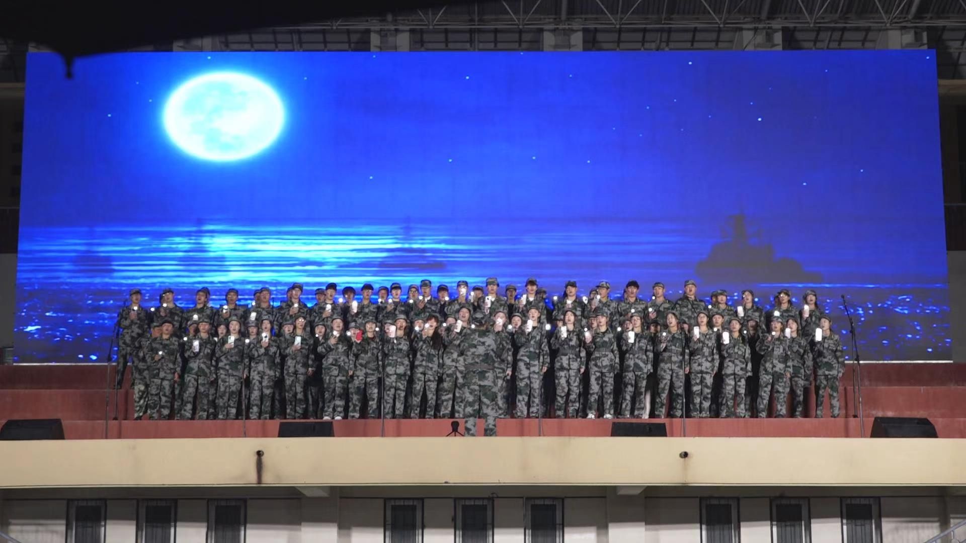 比赛当晚,各参赛队伍身着整齐军训服,以饱满的精神状态依次登场。《歌唱祖国》《我们都是追梦人》《祖国不会忘记》《时代号子》《不忘初心》等歌曲的演唱,将“红色基因”根植于心,把军训的坚毅与青春的热忱融入歌声,生动展现了新时代青年与祖国共奋进、与时代同成长的使命与担当。