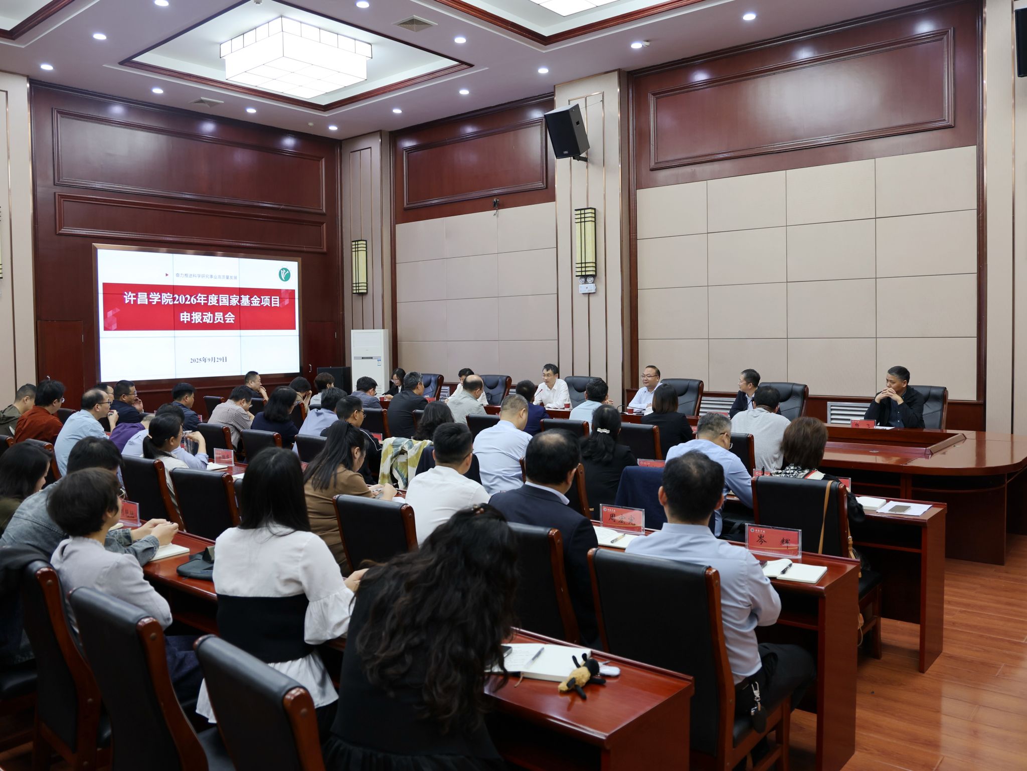 9月29日下午,bet36体育在线在学术会议大厅召开2026年度国家基金项目申报动员会。校长郑直、副校长赵艳敏出席会议。各二级学院书记、院长、分管科研副院长及科研骨干参加动员会。会议邀请河南科技学院科技处处长刘润强作主题报告。