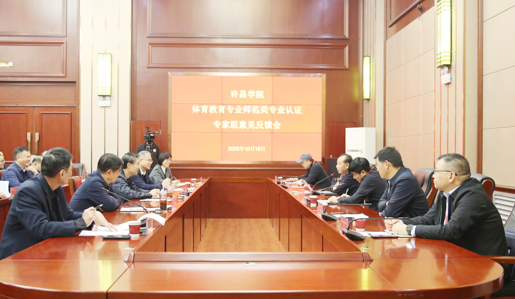 10月18日上午,教育部师范类专业认证专家组在bet36体育在线学术会议中心召开体育教育专业进校考查意见反馈会。专家组组长罗林教授,河南省教育评估中心副主任张新民教授,专家组成员岳新坡教授、王琦正高级教师,秘书李可副教授,bet36体育在线校长郑直,副校长牛海鹏、冯晓民出席会议。反馈会由罗林主持。