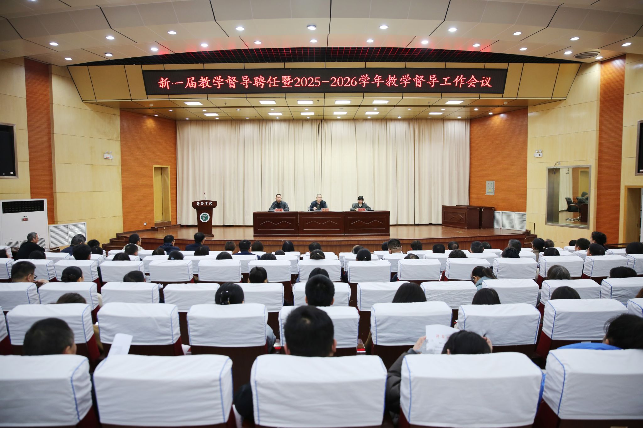会上,教务处处长张艳鸽宣读了《关于聘任校级教学督导委员的决定》以及《关于新一届校级教学督导和二级学院教学督导人员构成情况说明》。教学质量监控与评估中心相关负责人就2025-2026学年教学督导工作做了详细部署和安排。(摄影:孙旭涛)