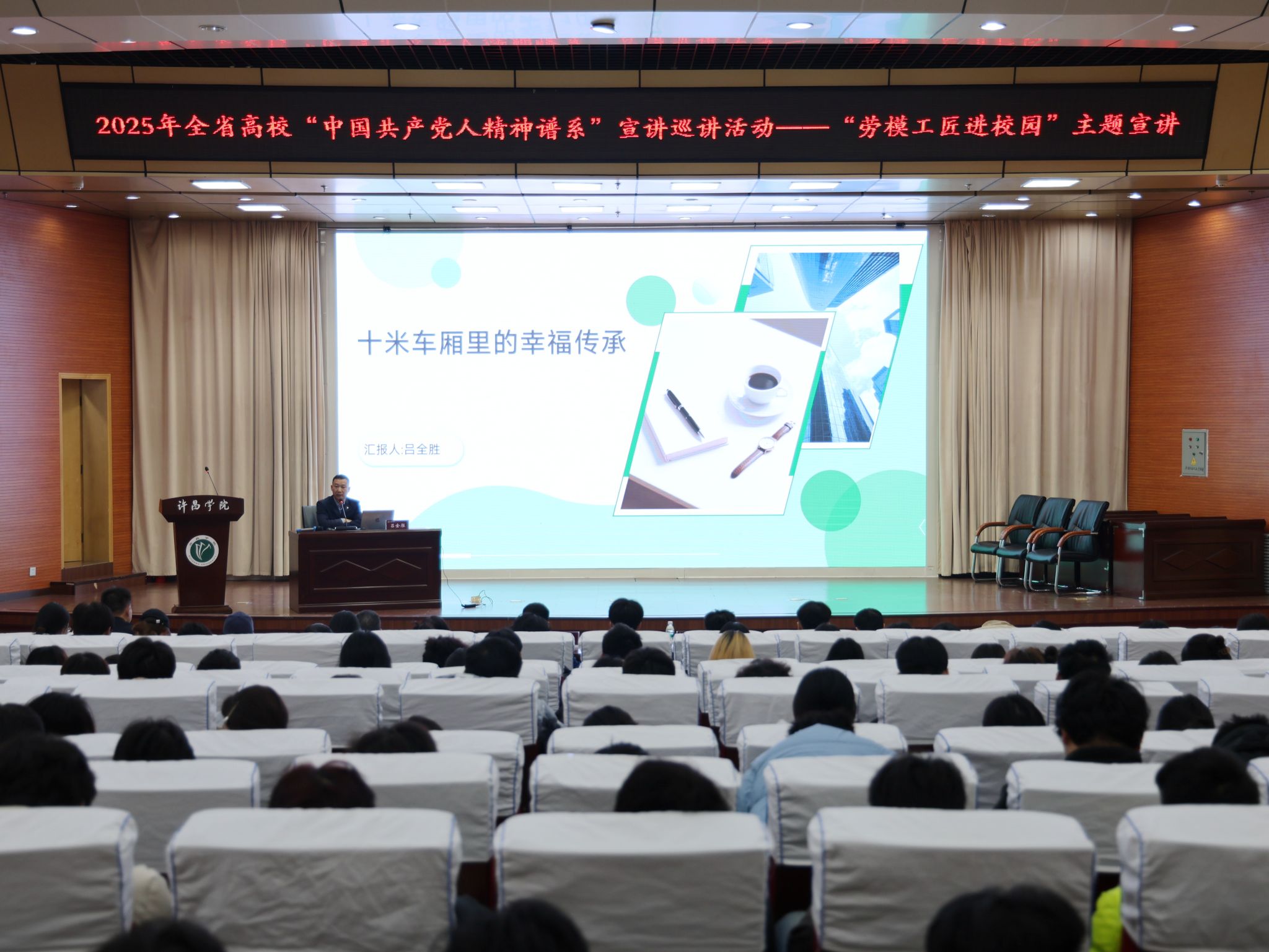 12月11日下午,bet36体育在线在图书馆二楼学术报告厅举行“中国共产党人精神谱系”暨“劳模工匠进校园”主题宣讲活动。“全国五一劳动奖章”获得者、许昌城市公共交通有限公司运营处长吕全胜,全国先进工作者、许昌市魏都区文峰路消防救援站副站长李宜轩担任宣讲嘉宾,学校党委宣传部、党委学工部、学生中心和弘毅书院“一站式”学生社区等单位相关负责人和各学院(社区)师生代表共300余人参加活动。