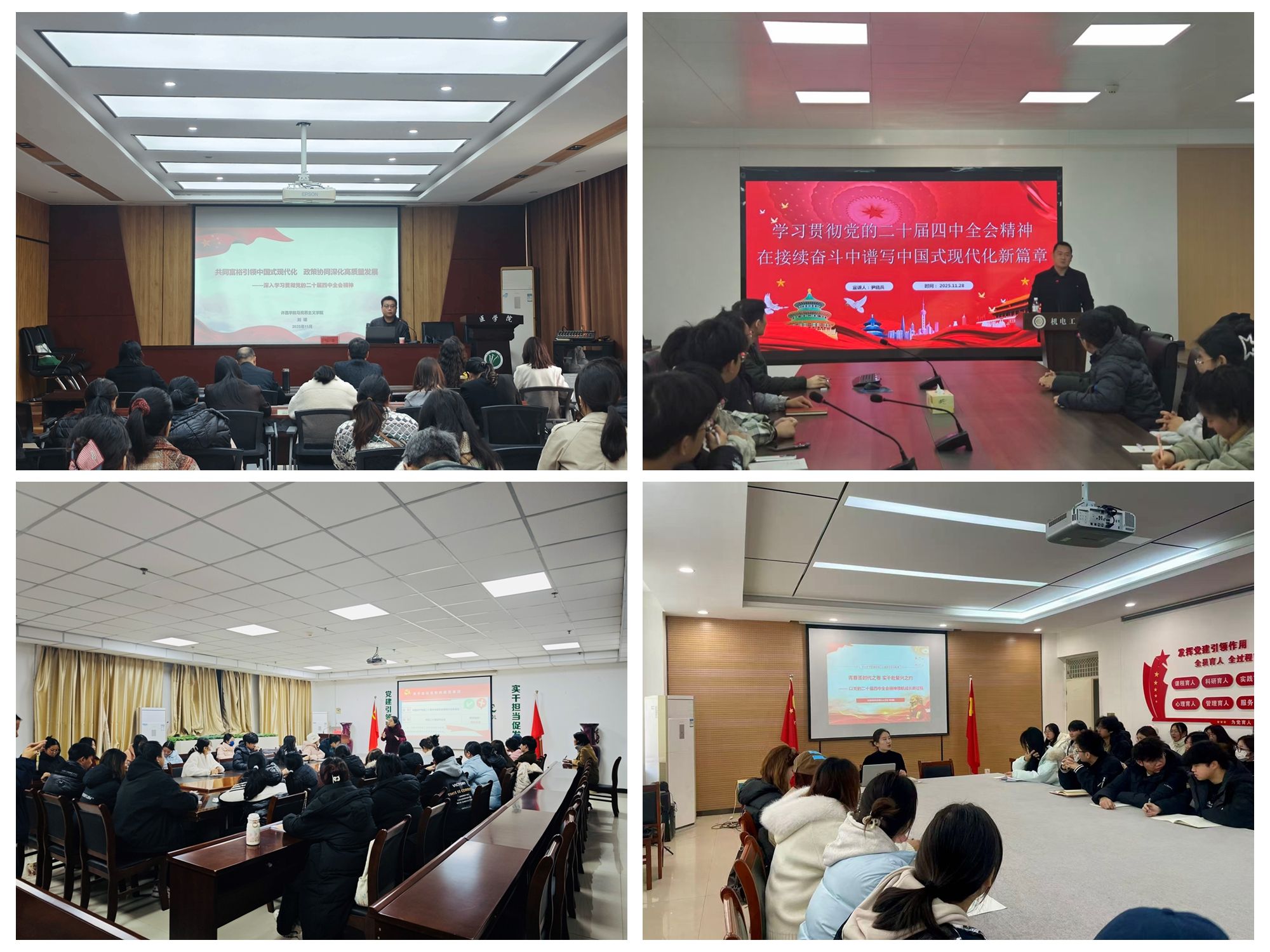 为深入学习贯彻党的二十届四中全会精神,近期,校党委宣讲团成员先后深入各单位开展专题宣讲,引导广大师生深刻领会全会精神,广泛凝聚思想共识,汇聚磅礴力量。