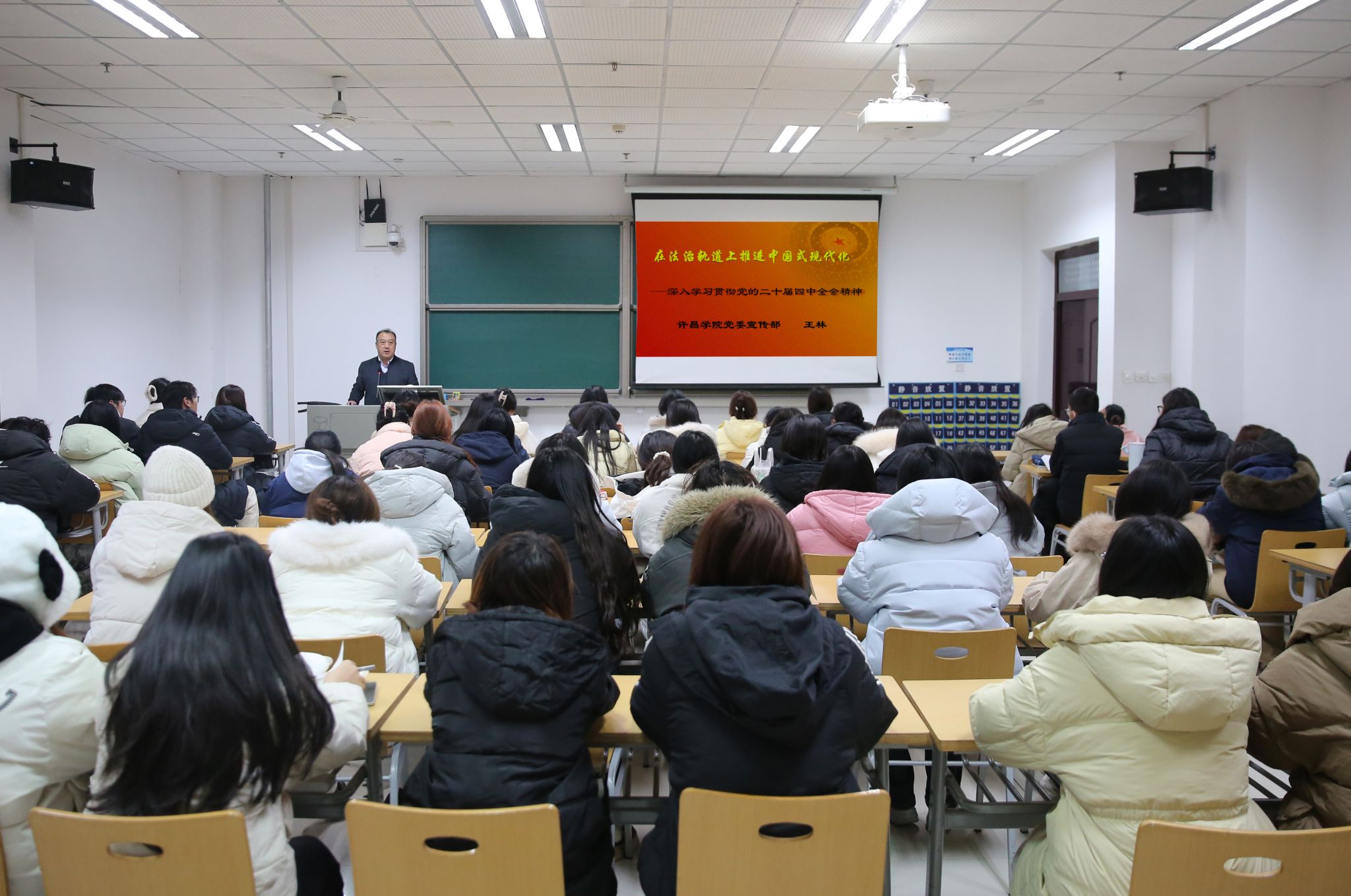 12月9日、12月12日,校党委宣讲团成员、党委宣传部部长王林分别为音乐舞蹈学院党员师生、外国语学院师生作主题宣讲报告。王林围绕党的二十届四中全会的重大意义、主要精神、战略部署和实践要求四个方面进行了系统阐释和深入解读,引导师生深刻领会全会精神的核心要义,自觉将学习成果转化为推动学院高质量发展、服务文化强国建设的强大动力。
