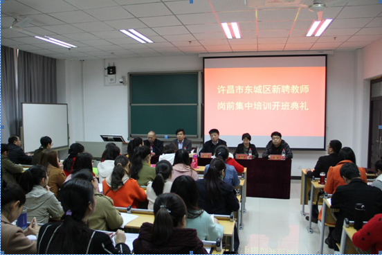 3月24日上午,由bet36体育在线继续教育学院承办的东城区2018年新聘教师岗前集中培训班在bet36体育在线顺利举行。bet36体育在线副院长黄怡俐,东城区党工委委员、管委会副主任时少伟出席开班典礼。来自许昌市东城区2018年新聘教师99人参加了开班典礼,开班典礼由继续教育学院直属党支部书记赵新军主持。