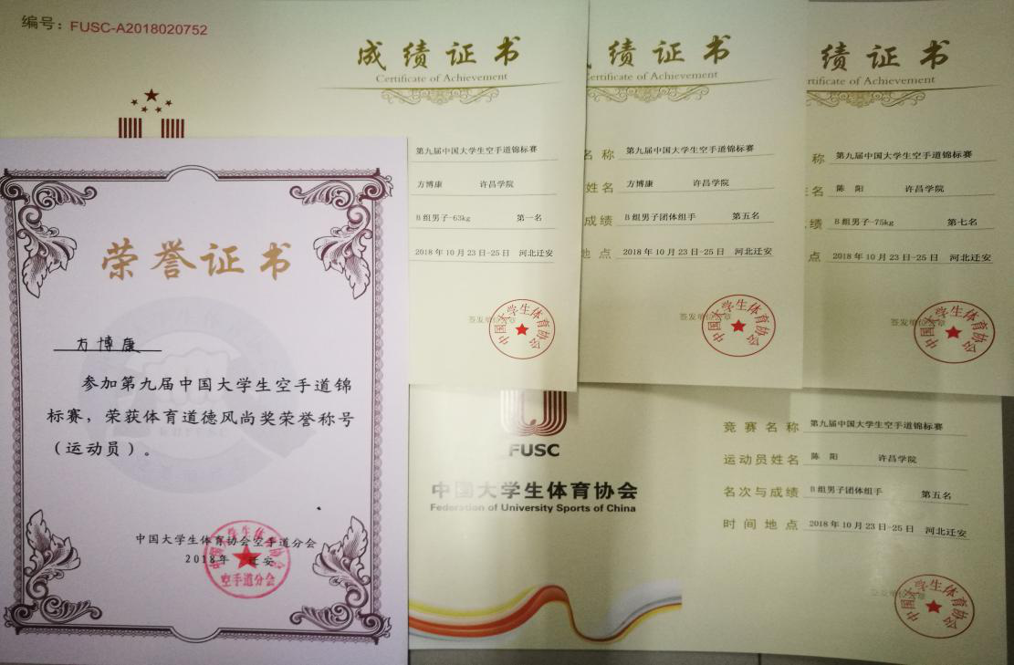 10月21日——26日,中国大学生第九届空手道锦标赛在河北省迁安市举行,bet36体育在线体育学院派出代表队参赛,共获得一个冠军、两个第五名、一个第七名。
