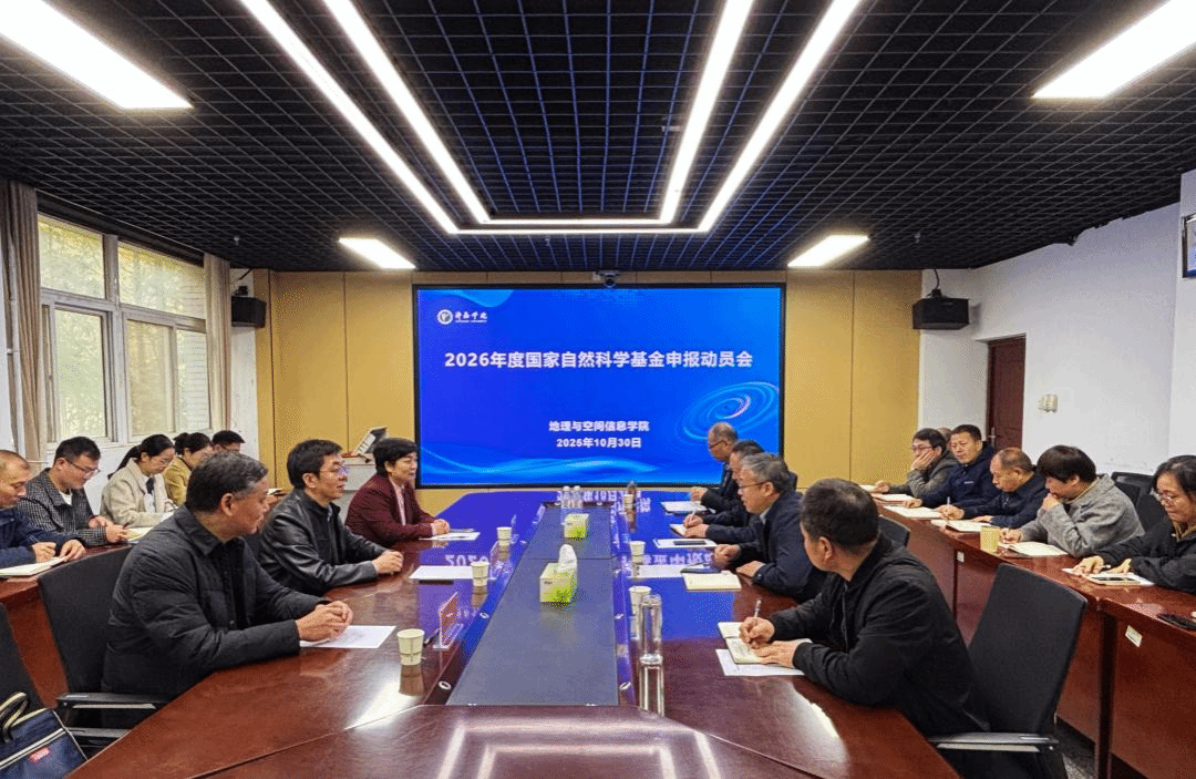 10月30日上午,地理与空间信息学院在理综楼二楼会议室召开2026年度国家自然科学基金申报动员会,统筹安排学院2026年度国家自然科学基金申报工作。副校长赵艳敏出席会议并作动员讲话。科研处和地理与空间信息学院相关负责人,学院全体博士参会。会议由地理与空间信息学院院长闫慧主持。