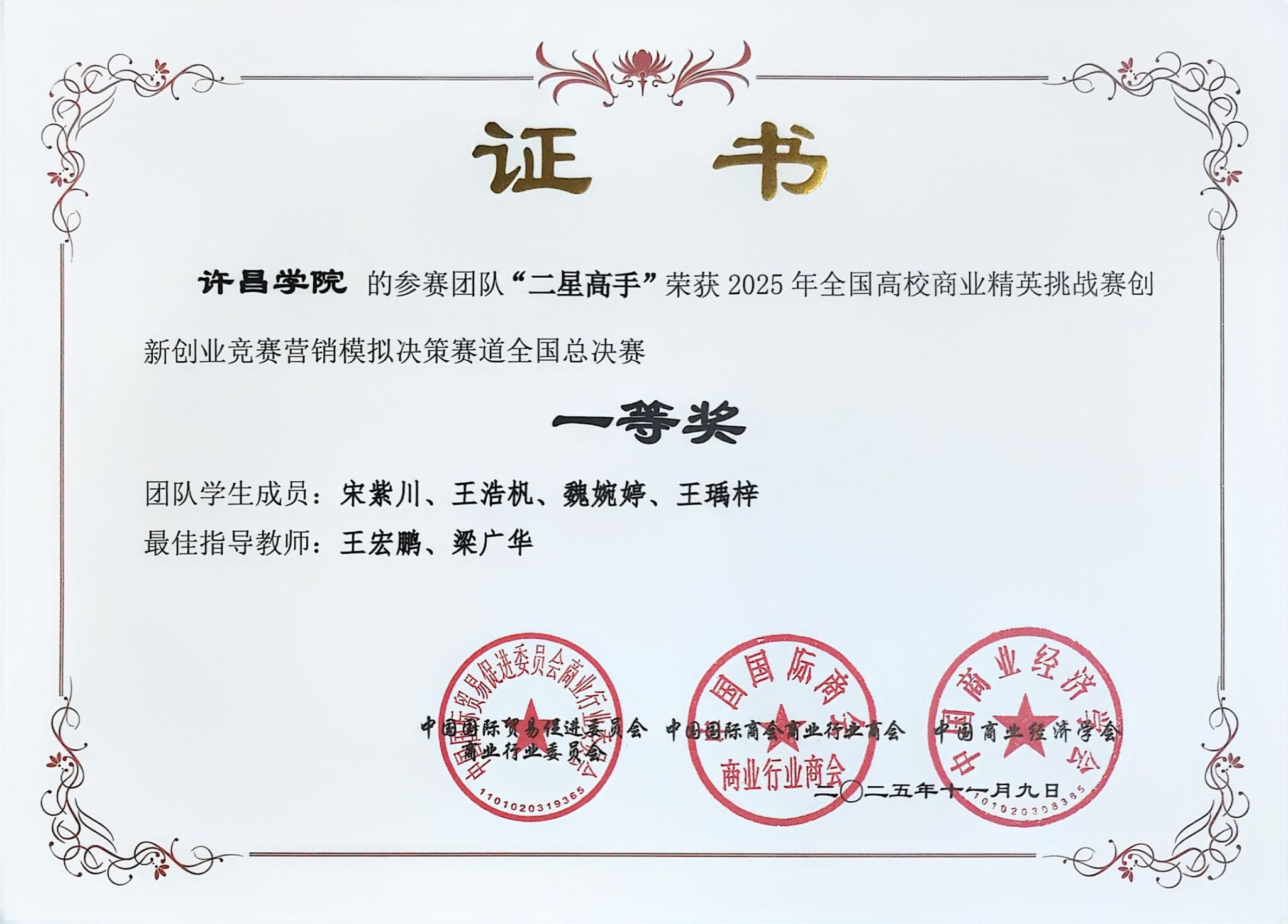 近日,2025年全国高校商业精英挑战赛创新创业竞赛营销决策模拟赛道全国总决赛结果公布,商学院2023级工商管理专业的两支队伍凭借卓越的战略洞察力与出色的团队协作,获得全国总决赛一等奖一项、二等奖一项。此次佳绩的取得,是商学院“理论与实践并重、创新与育人融合”教育模式的重要成果。
