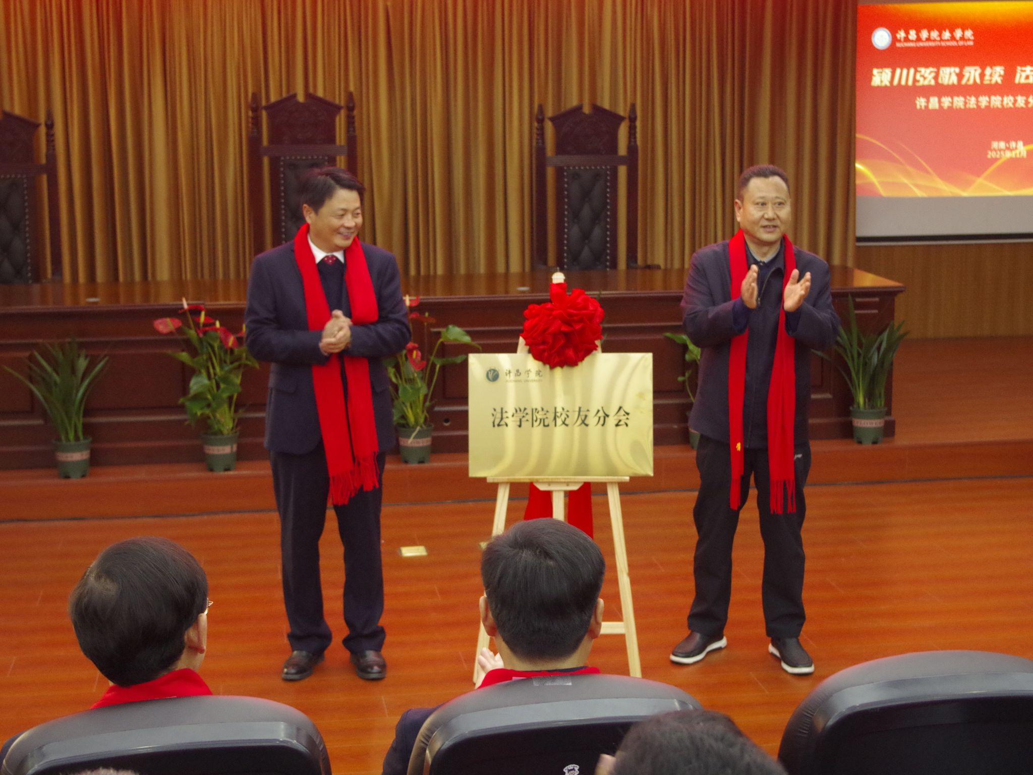 会上,法学院校友分会名誉会长孙海和王忠灿共同为校友分会揭牌。