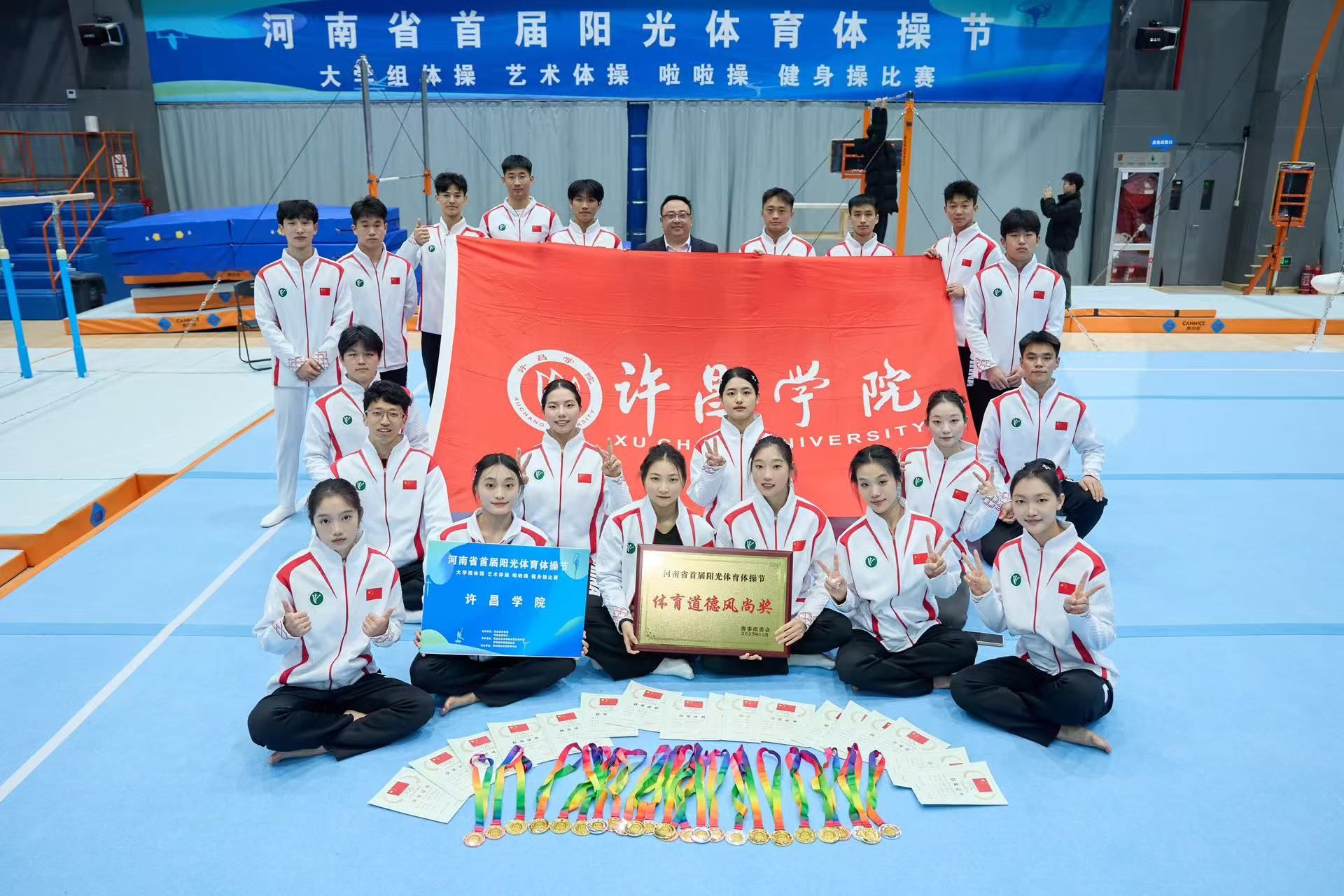 12月4日至7日,由河南省体育局和河南省教育厅联合举办的河南省首届阳光体育体操节大学组体操比赛在郑州奥体中心体操馆顺利举行,bet36体育在线体育学院体操专业学生凭借良好的竞技状态和专业素养,在多个项目中斩获冠、亚、季军,并荣获体育道德风尚奖,展现出良好的综合实力。