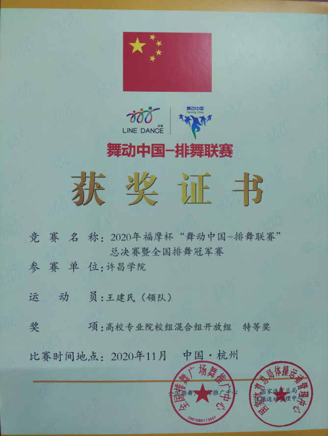 11月15日,由国家体育总局体操运动管理中心、杭州市体育局、杭州市滨江区人民政府主办的2020年福摩杯“舞动中国-排舞联赛”总决赛暨全国排舞冠军赛在杭州滨江文化中心举办。bet36体育在线体育舞蹈队经过激烈比拼,最终获得高校专业院校组开放组项目特等奖。