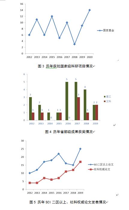 高层次科研成果和科研经费跃上新台阶。高层次科研成果是科研工作高质量发展的重要标志。五年来,获得国家级科研项目55项,其中国家自然科学基金项目35项、国家社科基金项20项,获得省部级科研项目291项。特别是国家社科基金项目立项数量,今年较之去年翻了一番,远远超过全省同类高校。省级科研项目立项今年较之去年的增幅达到40%。获得纵向科研经费3600多万元。国家级和省部级科研项目立项数量均超额完成了“十三五”规划预定的目标任务。获得省级科技进步奖和省社科成果奖28项,无论获奖数量还是质量均处于全省同类院校领先地位。其中河南省科技进步奖一等奖1项,省科技进步奖二等奖1项,省自然科学奖二等奖1项,省科技进步奖三等奖4项,省社科成果二等奖7项,实现了省级科技进步奖一等奖的历史性突破。获得授权专利1291项,其中发明专利228项,2016年获得河南省高校知识产权综合能力提升专项行动十强高校。共发表SCI二区以上论文93篇,其中一区论文58篇;发表权威期刊论文53篇,高层次论文数量远超“十三五”规划预定目标。