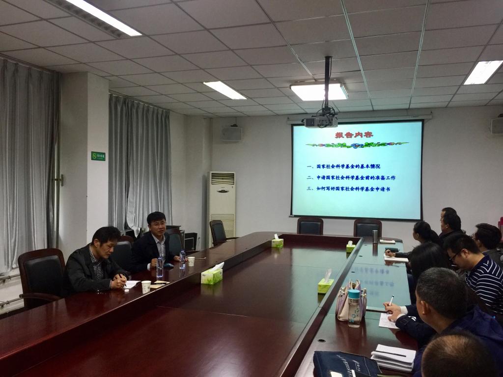 10月26日下午,应科技处、法政学院、马克思主义学院邀请,河南省百名优秀青年社科理论人才、郑州轻工业学院教授李贵成到bet36体育在线,在办公楼第一会议室作了题为《站在科研的山顶欣赏风景——国家社科基金项目申报经验谈》的学术报告。bet36体育在线相关学院教师30多人参加了报告会。报告会由科技处副处长郭现军主持。