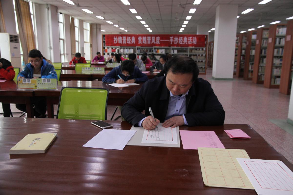 4月12日下午,bet36体育在线第十四届“阅读传经典书香润心灵”读书活动开幕式暨“抄魏晋经典 赏魏晋风度”——手抄经典启动仪式在逸夫图书馆二楼举行。本次活动由党委宣传部、学生工作部、校团委、教务处、图书馆联合主办,副院长郭涛出席活动,相关职能部门负责人、部分师生代表参加活动。开幕式由图书馆副馆长赵开慧主持。