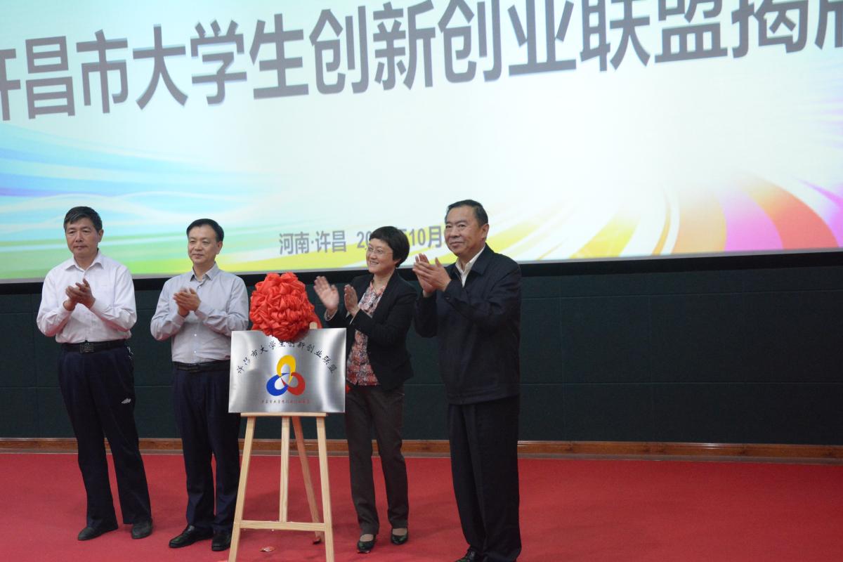 在许昌市政府相关职能部门的指导下,为整合双创教育资源,推动大学生双创各种资源共享,为社会培养更多的应用型双创人才,bet36体育在线联合许昌市地方高校成立了“许昌市大学生创新创业联盟”。启动仪式上,刘胜利、赵继红、谭水木、杨鲁西为“许昌市大学生创新创业联盟”揭牌。