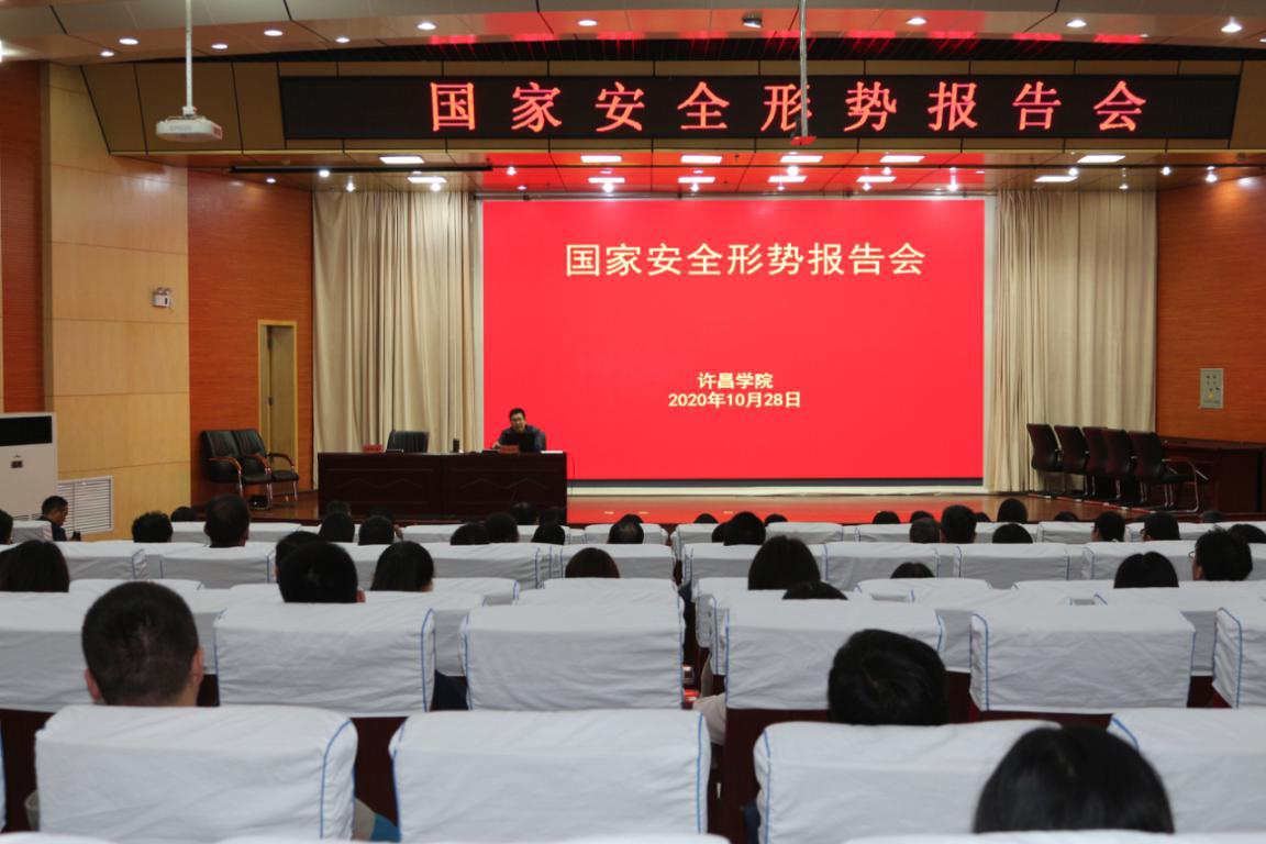 10月28日下午,bet36体育在线在图书馆二楼学术报告厅举办国家安全形势报告会,邀请有关专家来校作国家安全教育专题报告。学校机关各职能部门主要负责同志,各二级学院党委书记、副书记,分团委书记,全体专兼职辅导员,2020年新进教师和学校欧美同学会会员参会。报告会由党委保卫部部长周银超主持。