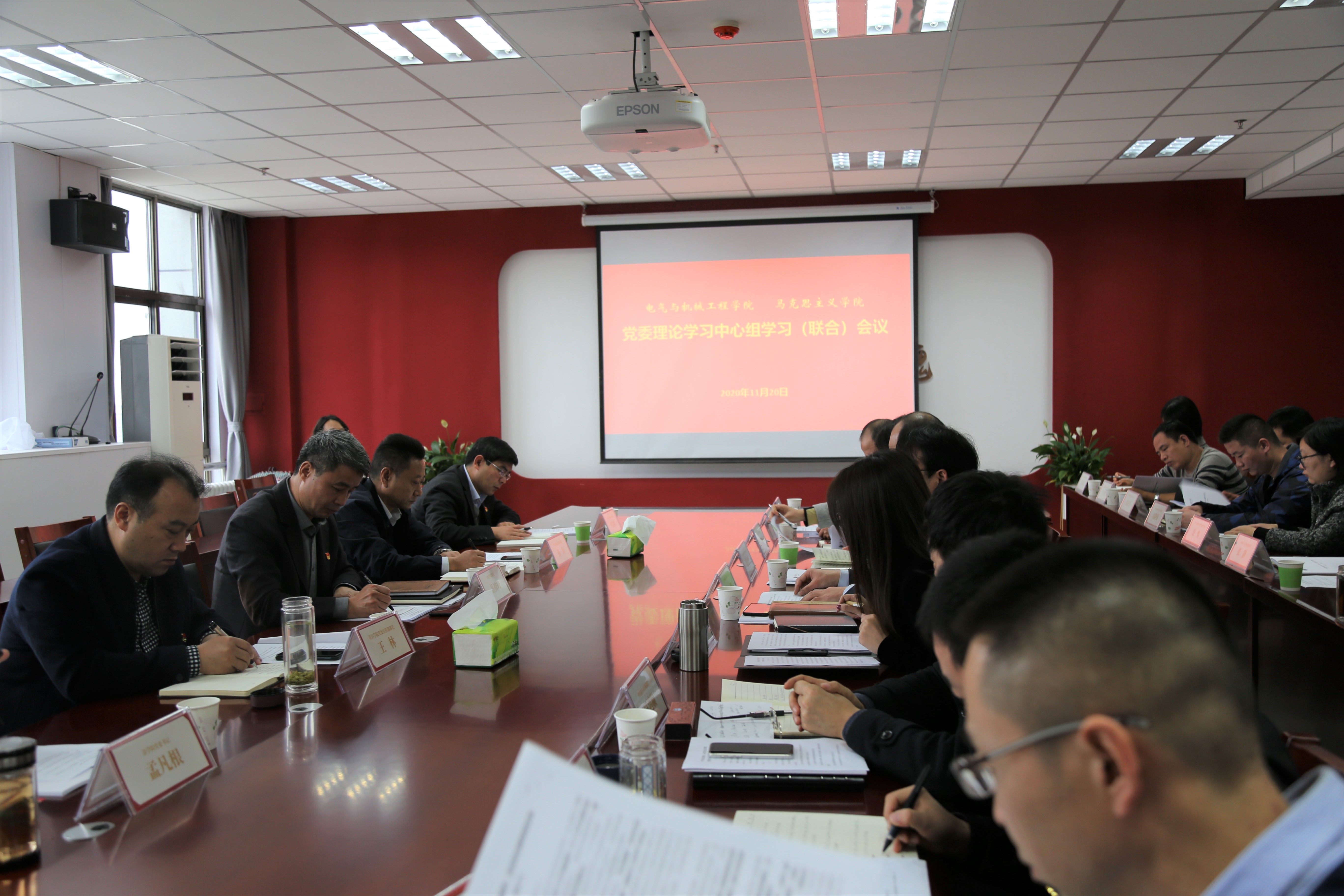 11月20日上午,马克思主义学院党委、电气与机械工程学院党委首次通过联合学习的创新方式,开展理论学习中心组学习活动。联点领导、院长岳修峰、党委副书记孙海,党委宣传部部长王林一行对学习情况和效果进行了巡听旁听、督导点评。法学院党委、化工与材料学院党委负责人到会旁听。