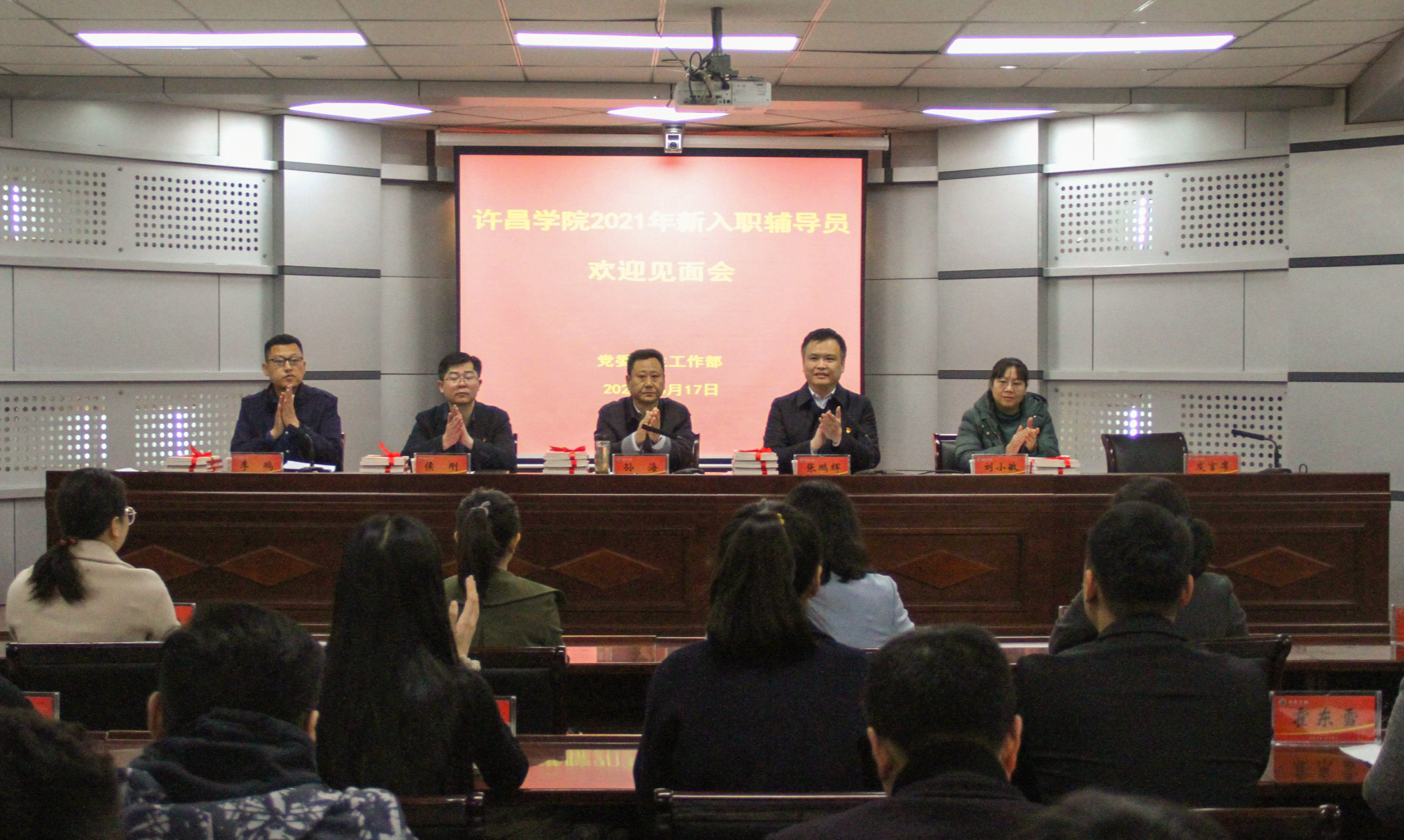 会上,校党委副书记孙海代表学校对新入职辅导员表示热烈欢迎。他简要介绍了学校辅导员队伍建设的基本情况,并对新入职辅导员提出了三点希望和要求,一是做“四有”好老师。辅导员是教师队伍的重要组成部分,要时刻对教育、对学校、对岗位和对学生充满爱心和责任心,用饱满的工作热情,扎实有效地开展工作,做大学生思想政治教育的主攻手、学生日常管理的主导者、学生健康成长的主心骨;二是明确与学生“亦师亦友”的基本定位。在工作中要始终树立服务意识,深入了解学生所思所想所盼,加强师生间的互动交流,尽快成长为学生健康成长的人生导师和知心朋友;三是加强学习、认真钻研,勤于思考、善于总结。要坚定理想信念,加强理论学习,涵养高尚师德,潜心研究辅导员工作的内在规律,在学思践悟中不断提高业务素质,朝着“专业化、职业化”的方向发展。
