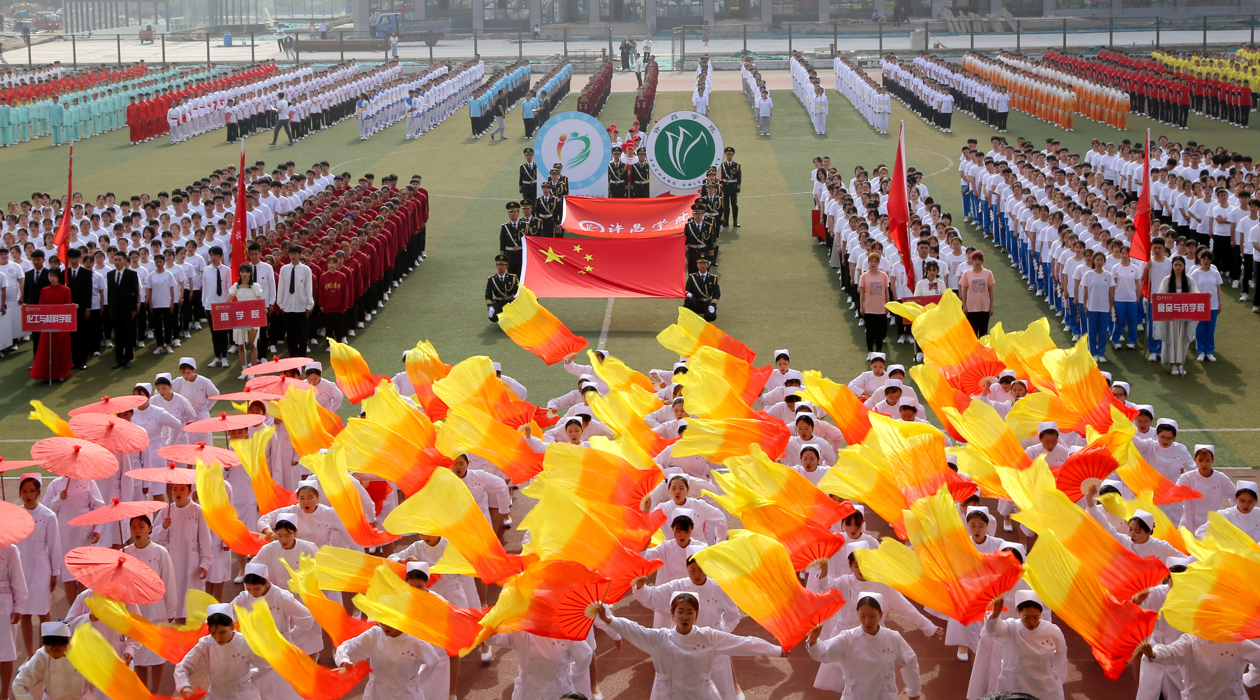 开幕式上,二级学院学生代表队进行了武术健身操“英雄少年”的比赛,教职工代表队进行了大众广播操(工间操)比赛。