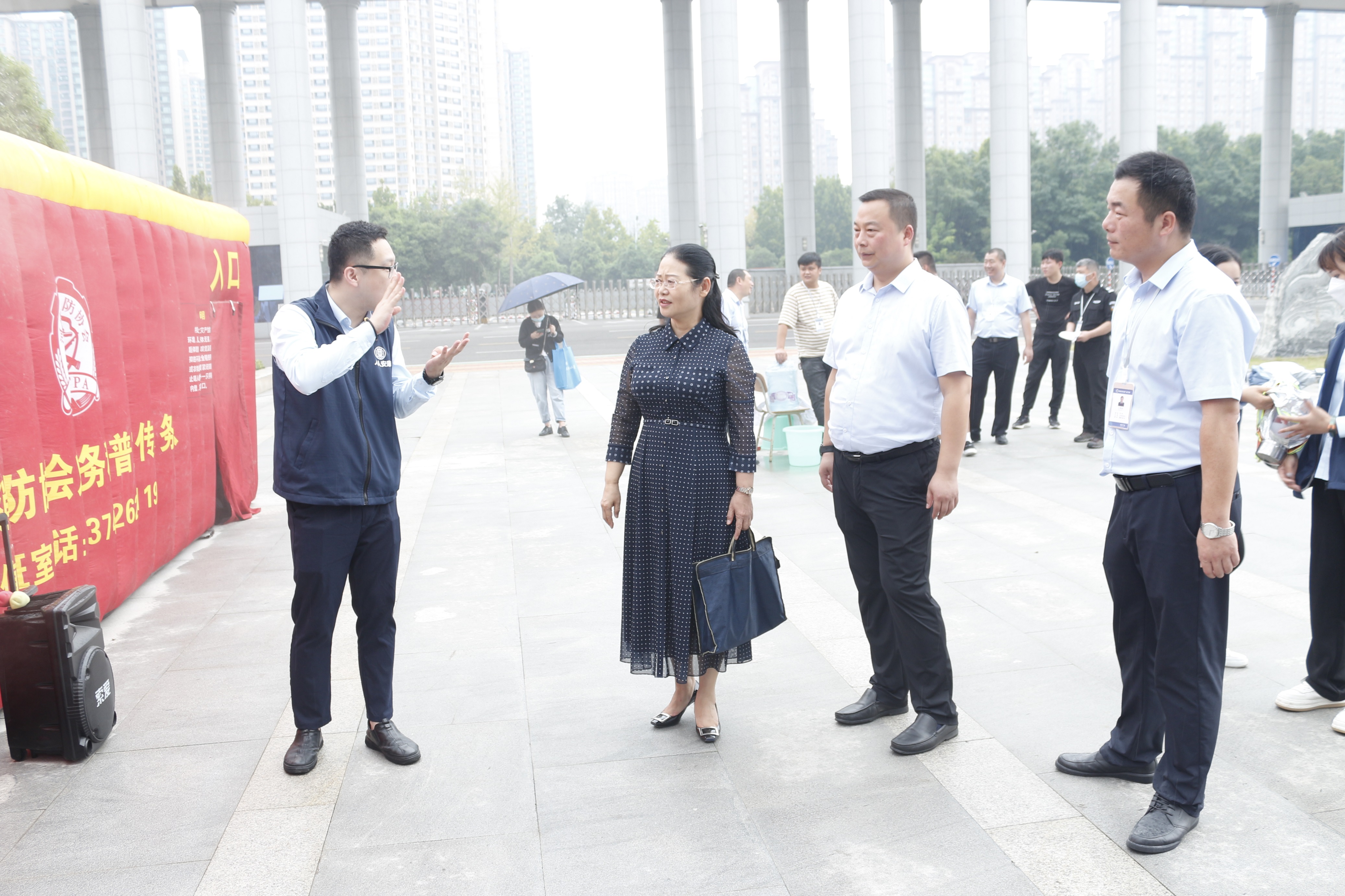 此次演练培训针对学校消防工作特点,既有火灾隐患检查、火灾应急处置、灭火方式方法等安全管理工作的理论指导,又有演练实践,并特别邀请河南省消防协会贺钞峰教员、河南省消防协会许昌办事处负责人刘咪莉进行指导。全体参训人员在北大门广场进行了灭火器、灭火毯使用演练,模拟火场逃生演练、智慧消防联动系统演练、反恐防暴应急演练和汽车破窗自救方法演练。
