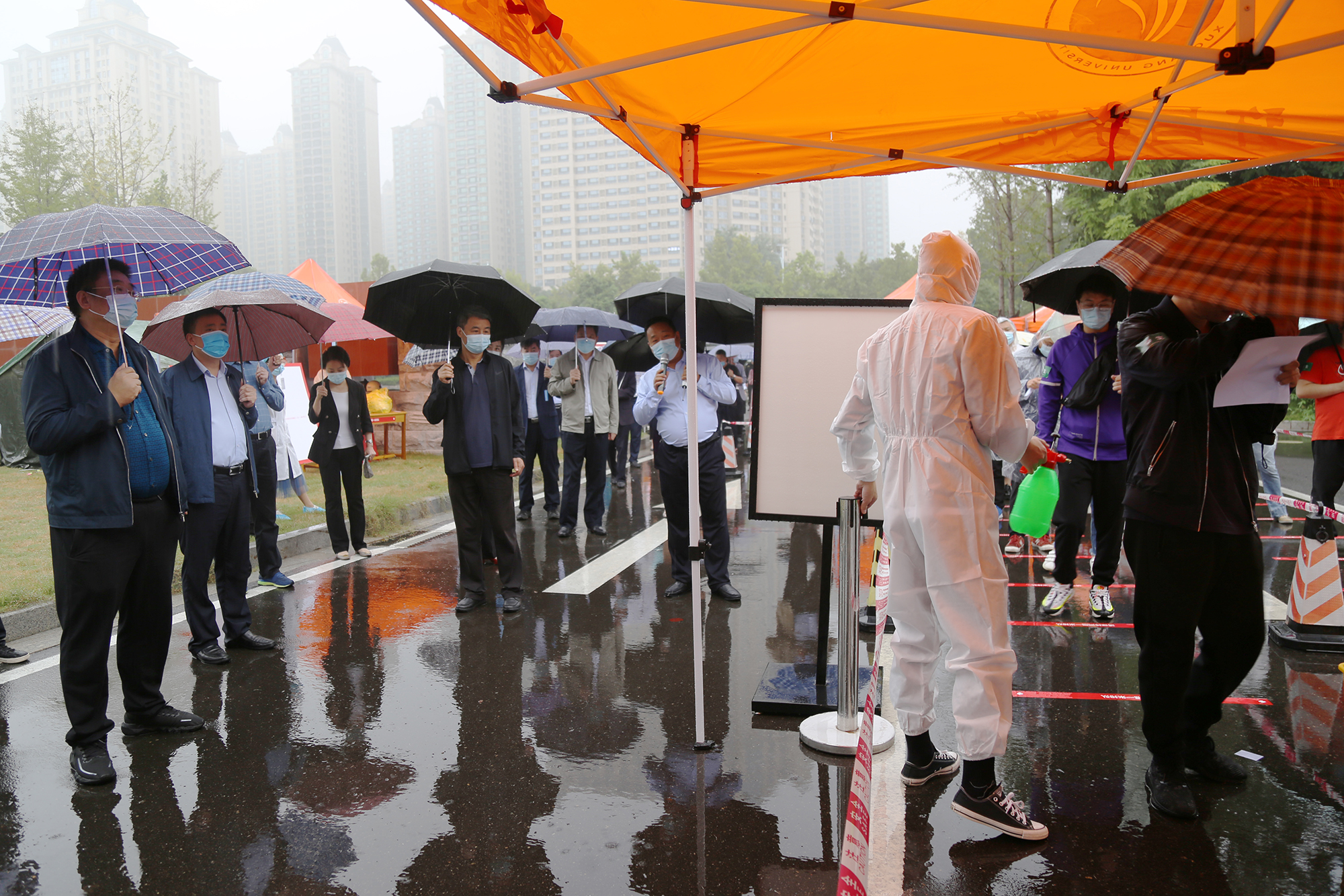 为进一步贯彻落实上级部门和学校疫情防控相关决策部署,科学精准做好学校新冠肺炎疫情防控工作,确保2021年秋季开学工作安全有序顺利进行,9月28日,bet36体育在线组织开展疫情防控应急演练。全体在校校级领导、新冠肺炎疫情防控指挥部各工作专班负责人,许昌市东城区管委会、东城区卫健局等有关领导到现场观摩指导,各二级学院党委书记、党委副书记,全体专兼职辅导员参加演练。