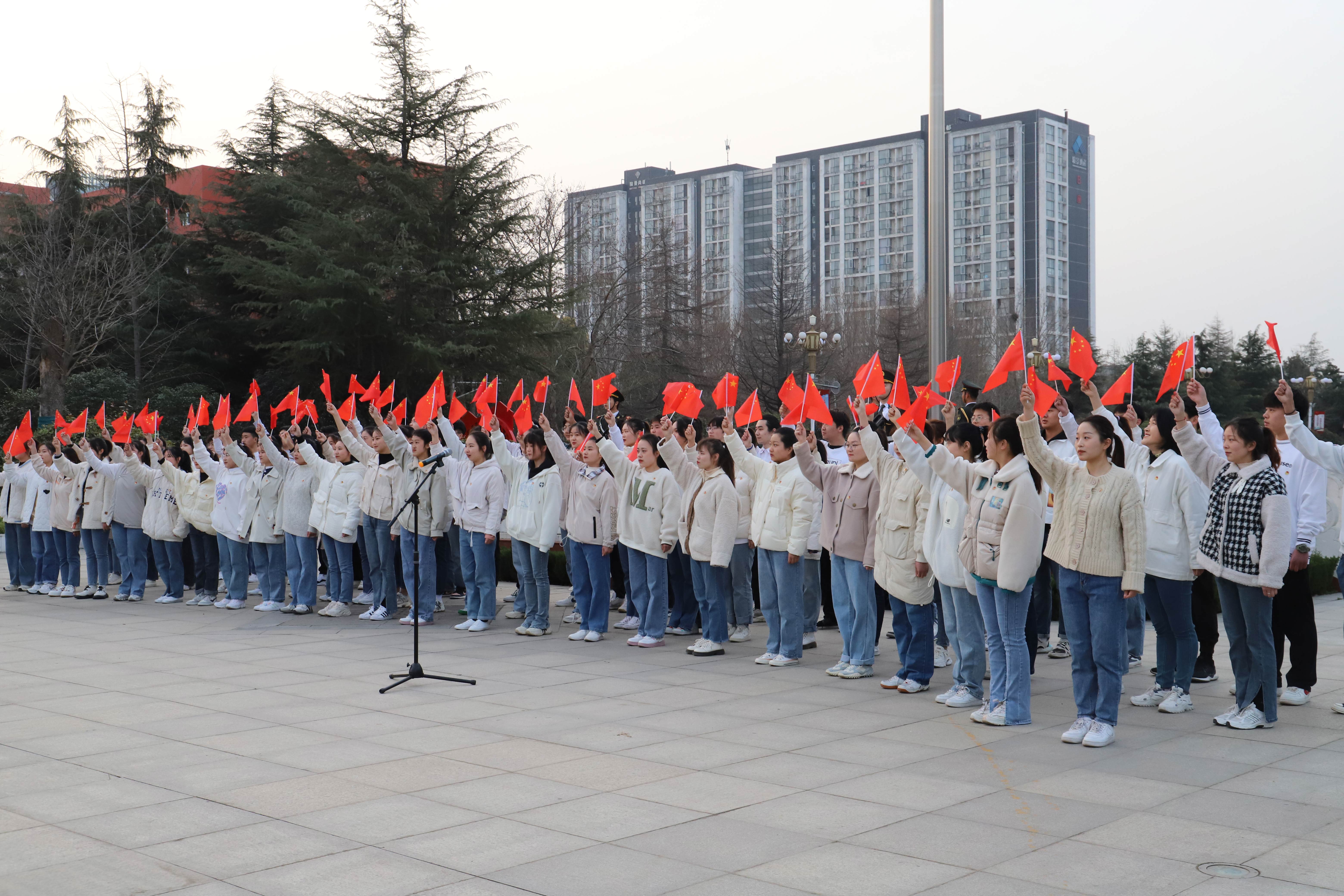3月7日上午,bet36体育在线在弘毅广场举行新学期第一次升国旗仪式暨“国旗下的誓言”主题教育活动。党委副书记、院长岳修峰,党委副书记孙海,副院长潘春彩,相关职能部门主要负责人,各二级学院(书院)党委书记、副书记,全体专兼职辅导员及学生代表共500余人参加活动。兴华路校区同时举行升国旗仪式。