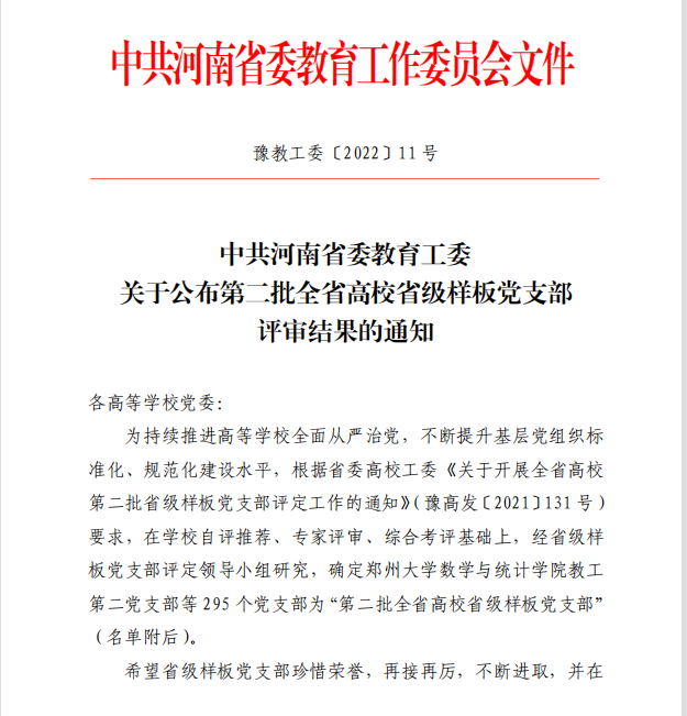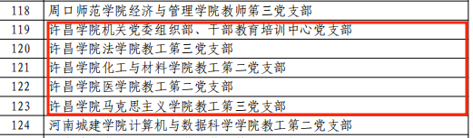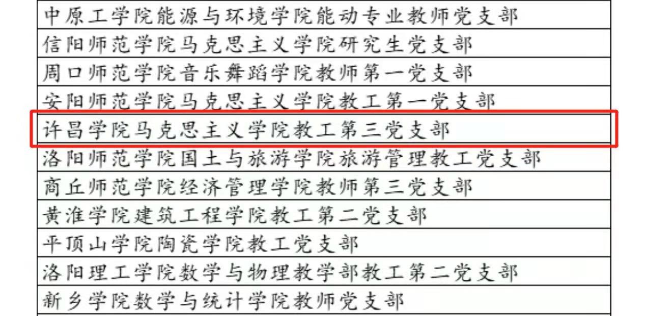 近日,教育部思想政治工作司、河南省委教育工委先后公布了“第三批新时代高校党建示范创建和质量创优工作结果”和“第二批全省高校省级样板党支部”评审结果。bet36体育在线马克思主义学院教工第三党支部成功入围第三批“全国党建工作样板支部”培育创建单位。机关党委组织部、干部教育培训中心党支部,法学院教工第三党支部,化工与材料学院教工第二党支部,医学院教工第二党支部,马克思主义学院教工第三党支部获评第二批“全省高校省级样板党支部”。这是继bet36体育在线电气与机械工程学院教工第一党支部顺利通过“全国党建工作样板支部”验收,校团委党支部和商学院教工第五党支部入选首批“全省高校省级样板党支部”后取得的新突破,为提高bet36体育在线党支部标准化、规范化建设水平积累了经验、树立了典型。