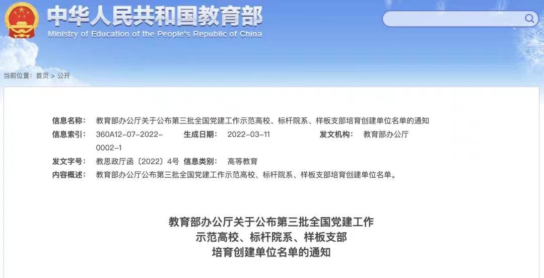 近年来,学校党委始终坚持以高质量党建引领事业高质量发展,切实加强基层党组织标准化建设,扎实推进新时代高校党建示范创建和质量创优工程,积极组织开展全国、全省党建工作样板支部申报,初步发掘和打造了一批党建品牌,形成了全国样板、省级样板、校级样板示范带动、比学赶超的良好局面。第二批全省高校省级样板党支部、第三批新时代高校党建示范创建和质量创优工作启动以来,党委组织部精心组织、动员基层党组织申报,对申报支部全面调研,坚持好中选优、优中选强,并从方向把握、角度选取、资料准备、材料撰写等方面进行全方位的指导,凝练先进经验、典型做法,提升申报工作质量。下一步,学校将按照新时代党的建设总要求,以政治建设为统领,坚持培育为基、重在建设、典型引领、整体推进的要求开展党建“双创”工作,充分发挥基层党组织在抗击疫情灾情、推动发展、服务师生、凝聚人心、促进和谐的作用,以更加优异的成绩迎接党的二十大胜利召开。(图片由党委组织部提供)