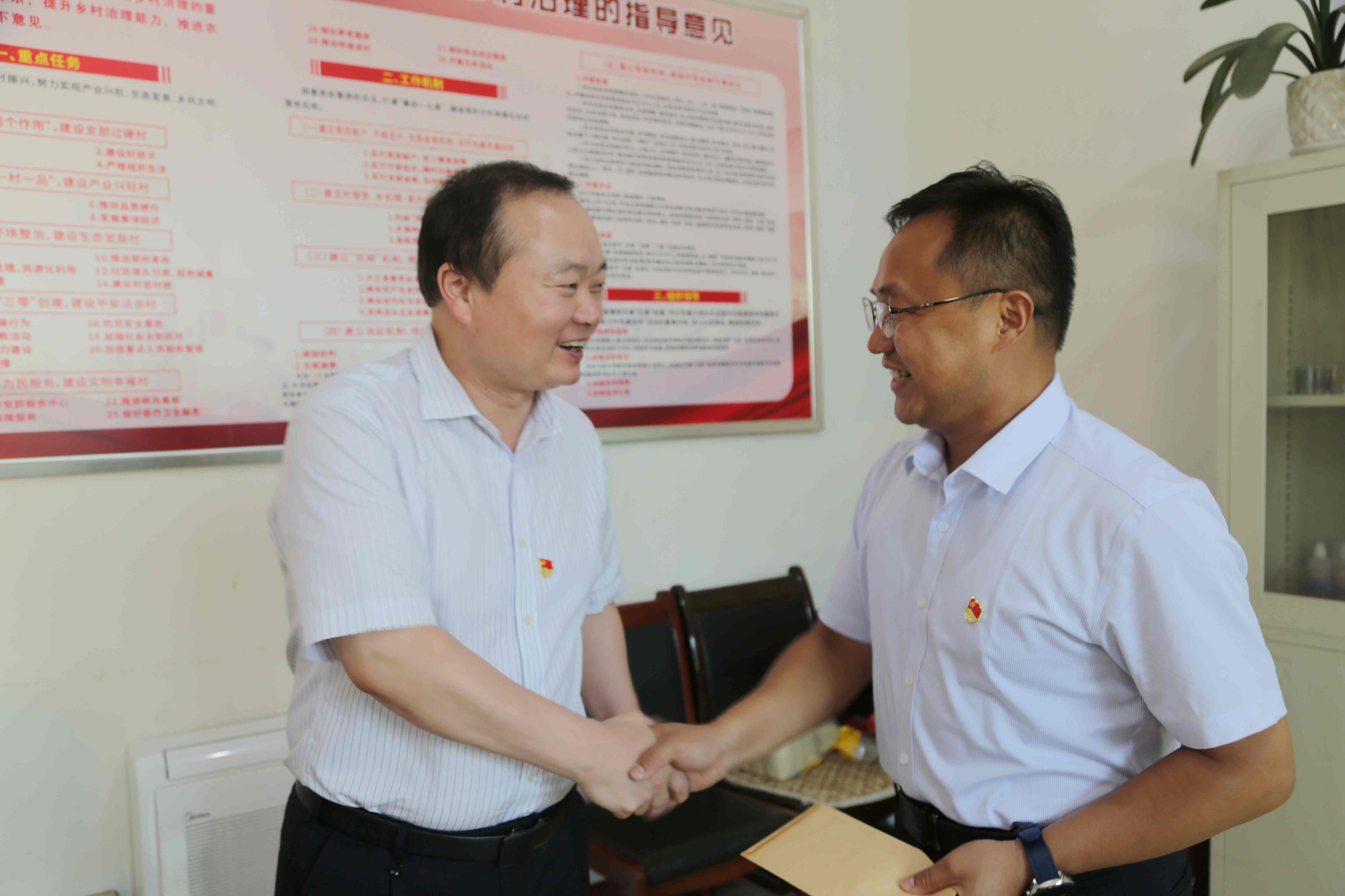 7月1日上午,校党委书记郭涛来到bet36体育在线定点帮扶许昌市建安区艾庄回族乡袁庄村调研,亲切慰问困难党员、老党员和驻村第一书记,送上“七一”节日祝福。
