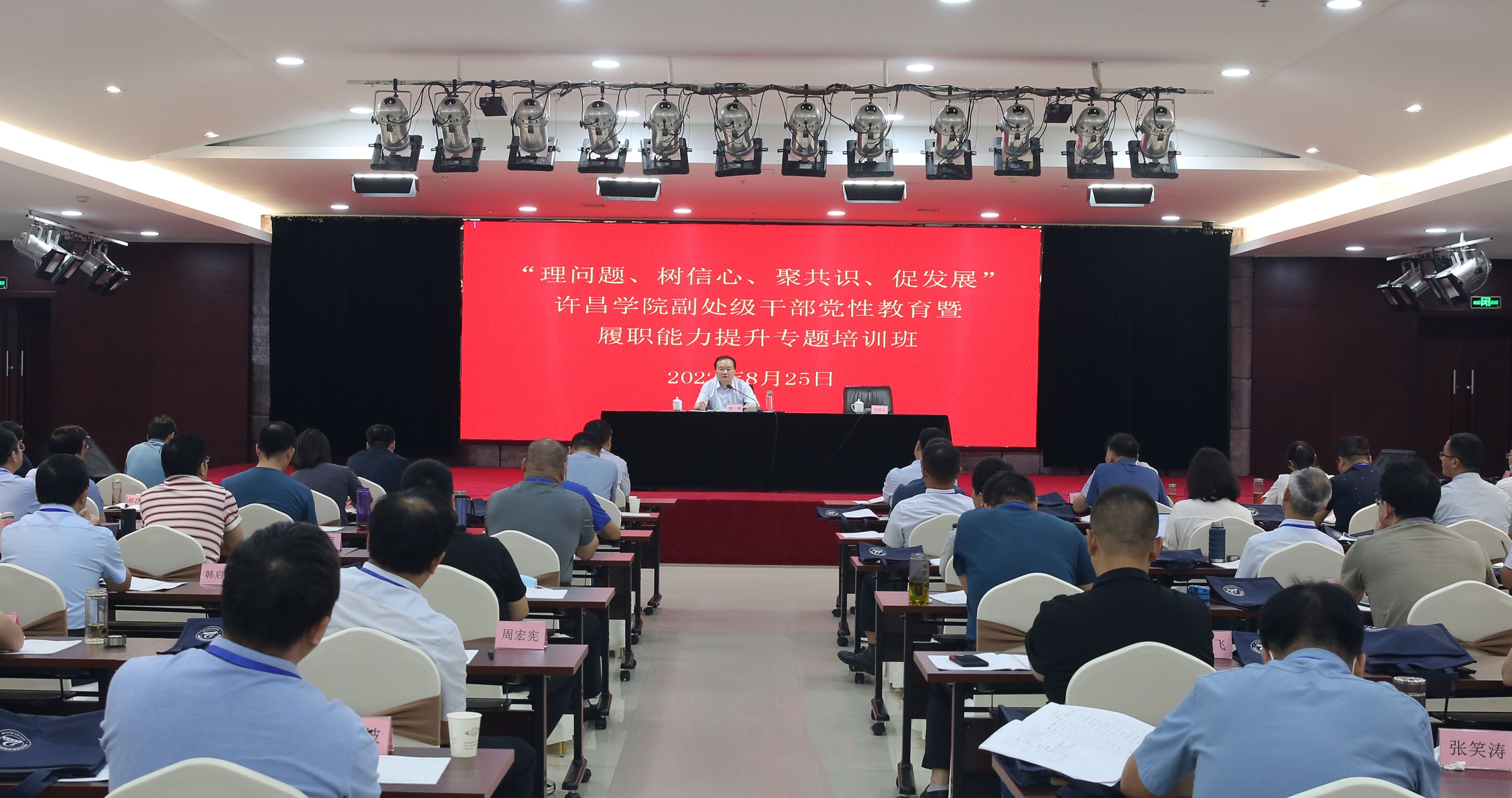 根据校党委统一部署,8月22日至26日,bet36体育在线副处级领导干部“理问题,树信心,聚共识,促发展”党性教育暨履职能力提升专题培训班在新乡先进群体教育基地顺利举办。学校党委书记郭涛为全体学员作专题报告。来自全校各二级单位的90余位副处级领导干部参加培训。