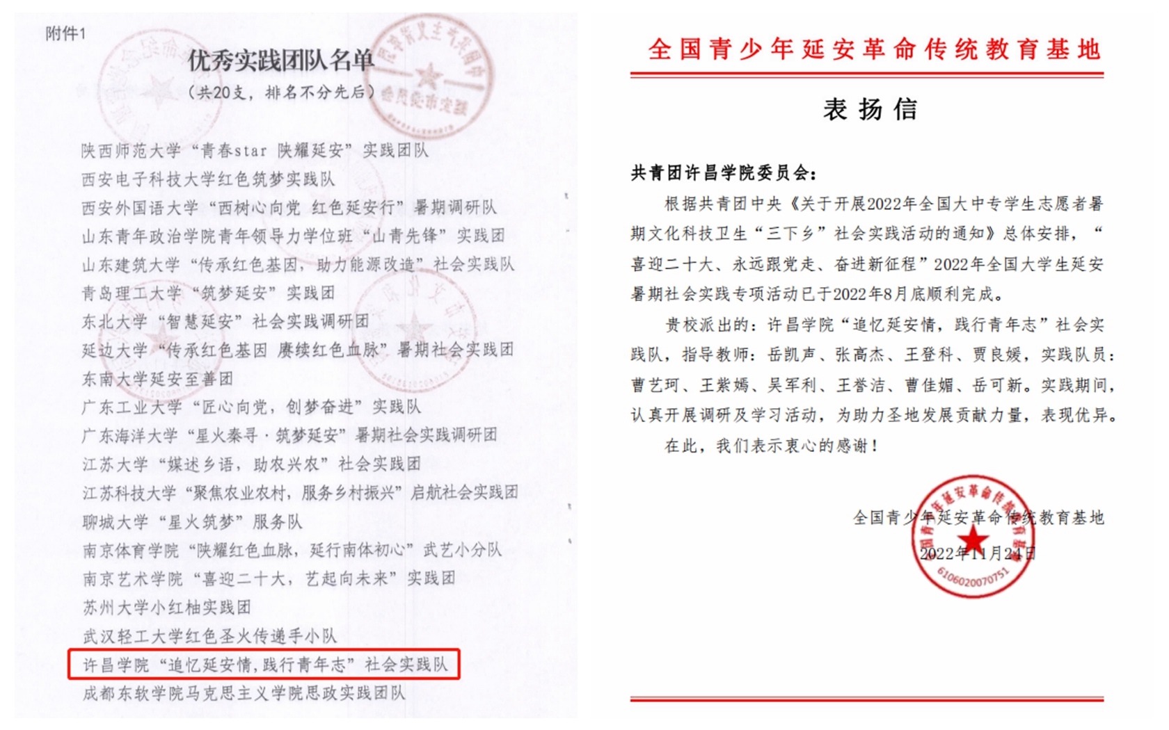 近日,从《关于“喜迎二十大、永远跟党走、奋进新征程”2022年全国大学生延安暑期社会实践专项活动情况的通报》(延市团联发〔2022〕35号)获悉,bet36体育在线“追忆延安情,践行青年志”社会实践队和东南大学、江苏大学、陕西师范大学等20个高校实践队被评为2022年全国大学生延安暑期社会实践专项活动优秀实践团队。