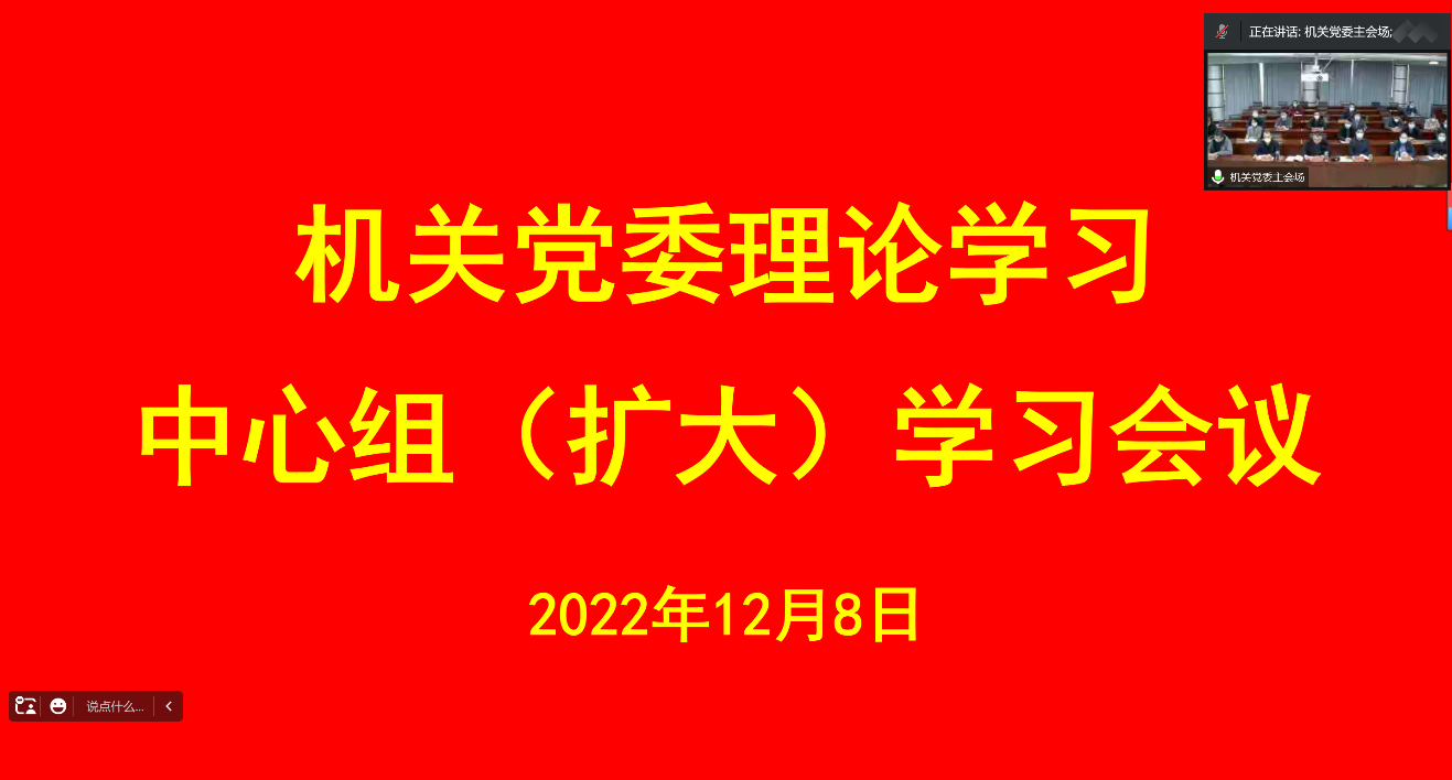 12月8日,机关党委通过“线上线下”相结合的形式召开理论学习中心组(扩大)学习会议,学习贯彻党的二十大精神,机关党员干部200余人参加会议,会议由机关党委书记李万仓主持。会议邀请了马克思主义学院菅强博士作《新时代新征程 坚持和发展中国特色社会主义的政治宣言和行动纲领》专题辅导报告。会议要求,各党支部要把学习宣传贯彻党的二十大精神作为当前和今后一个时期首要政治任务,精心组织,强力推进,结合教职工政治理论学习、“三会一课”、主题党日等开展内容丰富、形式多样的学习宣传活动,教育引导部门教职员工切实把思想和行动统一到党的二十大精神上来;支部书记要担负起政治责任,要发挥“头雁效应”,带头学、带头讲、带头干,做深学细悟的表率、领会把握的表率、落实见效的表率,把贯彻落实党的二十大精神与服务学校发展大局、推动部门工作相结合,以高质量的服务水平推动学校各项事业高质量发展。