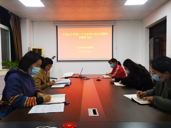 近日,化工与材料学院党委先后召开党委理论学习中心组会议和学习贯彻党的二十大精神专题会,深入学习宣传贯彻党的二十大精神。化工与材料学院院长张艳鸽领学了党的二十大报告主要内容,并对持续深入学习宣传贯彻党的二十大精神作出安排部署。会议要求,把学习好、贯彻好党的二十大精神作为当前和今后一个时期的首要政治任务,加强组织领导,周密安排部署,确保学习贯彻取得实效;全体教职工要进一步提高思想认识,认真贯彻落实学校党委的各项决策部署,聚焦立德树人根本任务,深刻领悟习近平总书记在党的二十大报告中关于教育、人才、创新的重要指示精神,把学习贯彻党的二十大精神与加快推进高水平应用型大学建设紧密结合起来,与继续深入探索OPCE大学生创新素养教育改革实践结合起来,明确今后的工作思路和工作重心,不断开创学院各项事业发展新局面。